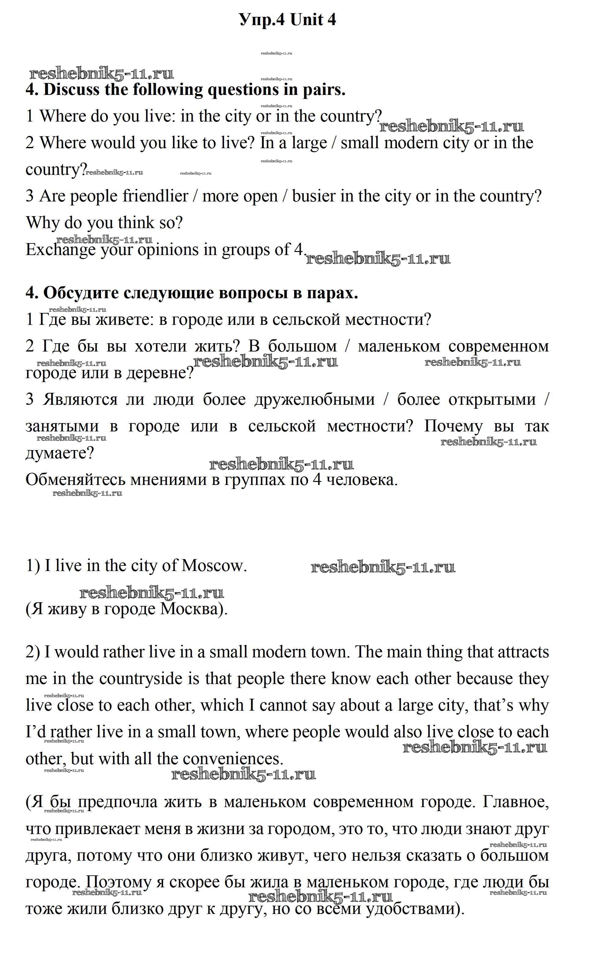 Решебник №2 / unit 4. what are your whereаbouts? / 4