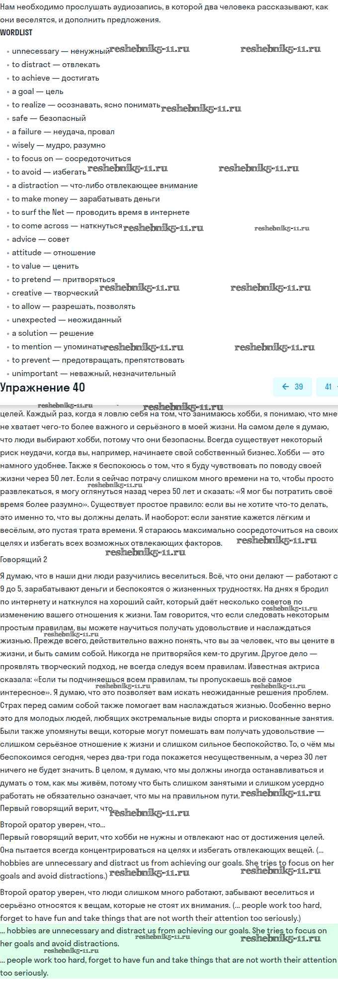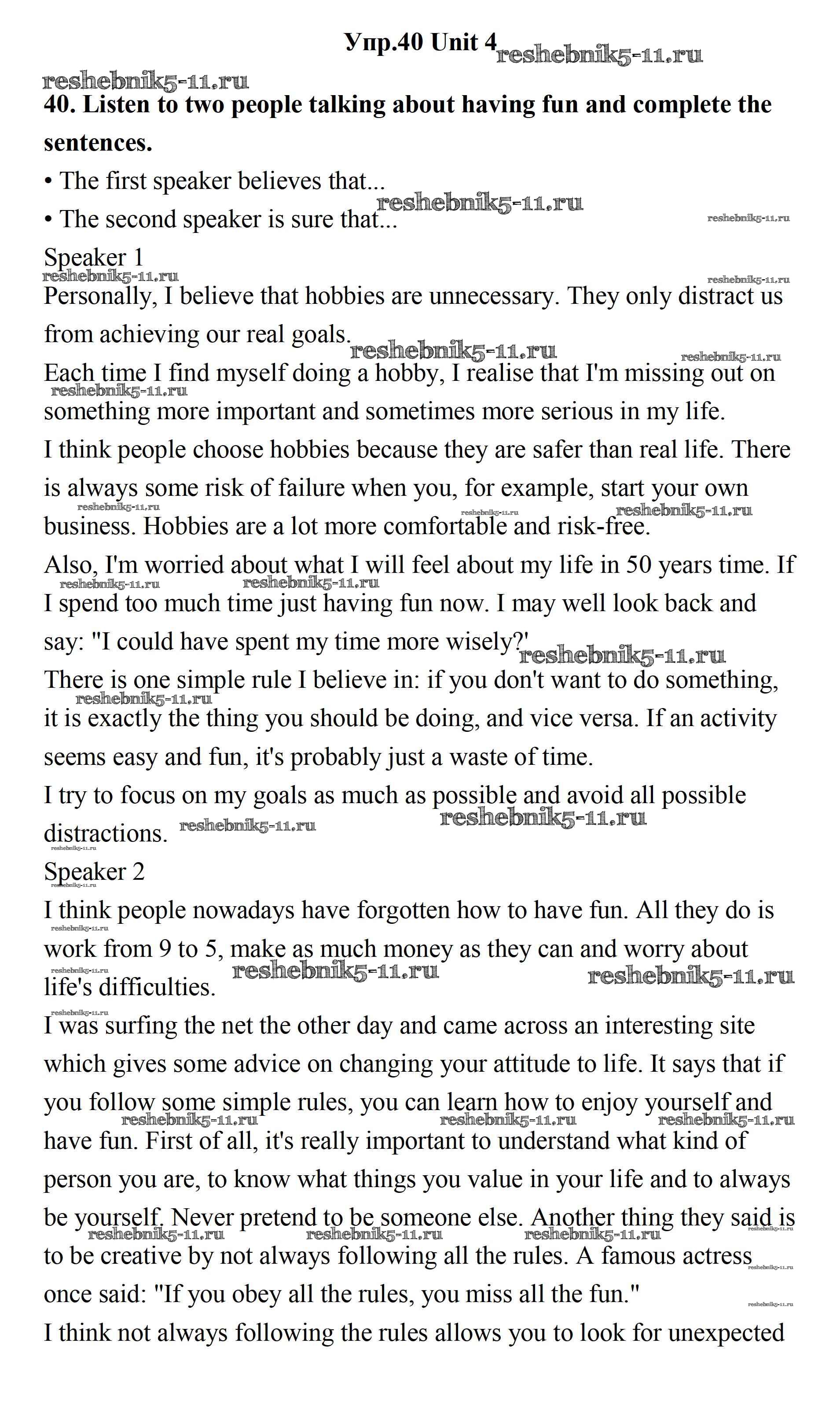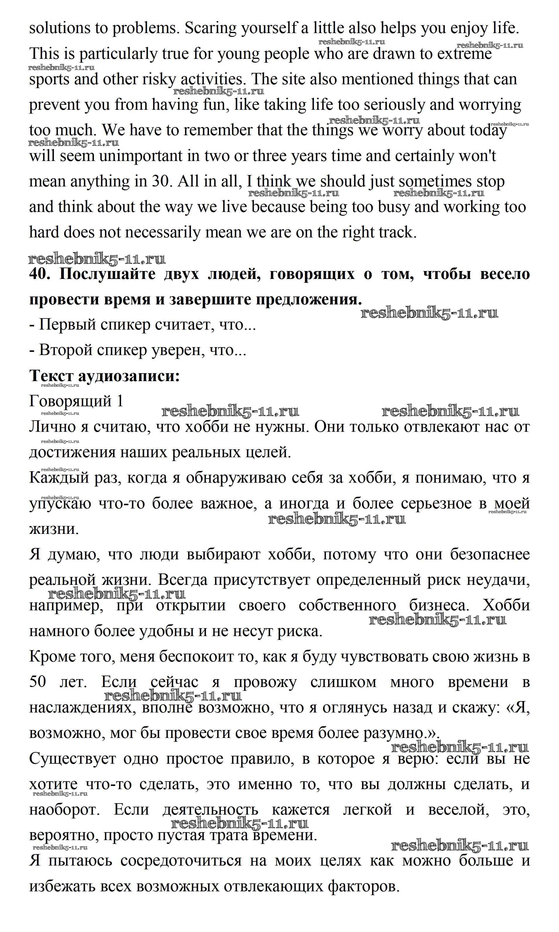 Готовая домашняя работа с ответами по Английскому языку за 11 класс Биболетова, Бабушис, Снежко Учебник Enjoy English Дрофа 2017 ФГОС - Unit 4. What Are Your Whereаbouts? 40