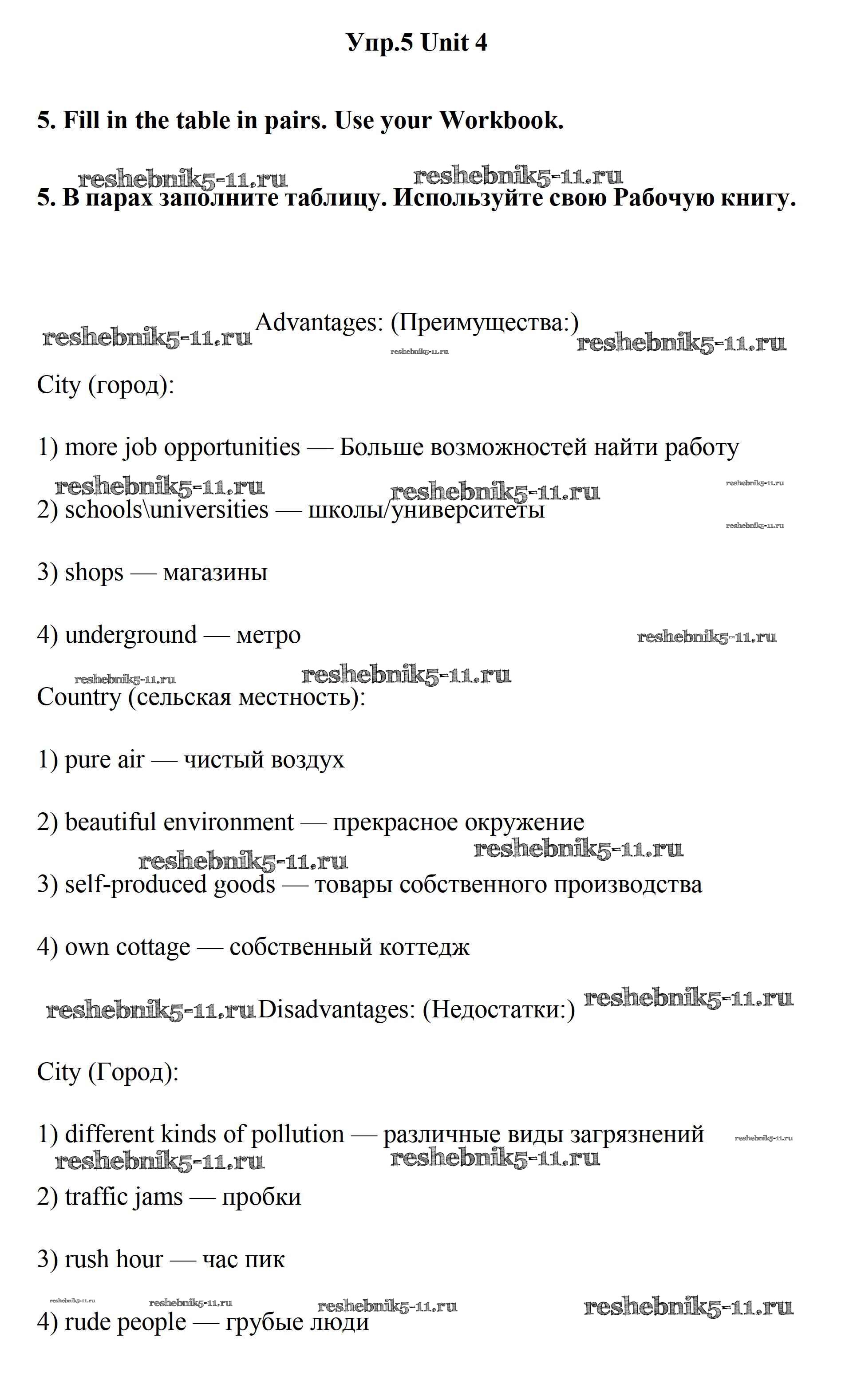 Готовая домашняя работа с ответами по Английскому языку за 11 класс Биболетова, Бабушис, Снежко Учебник Enjoy English Дрофа 2017 ФГОС - Unit 4. What Are Your Whereаbouts? 5
