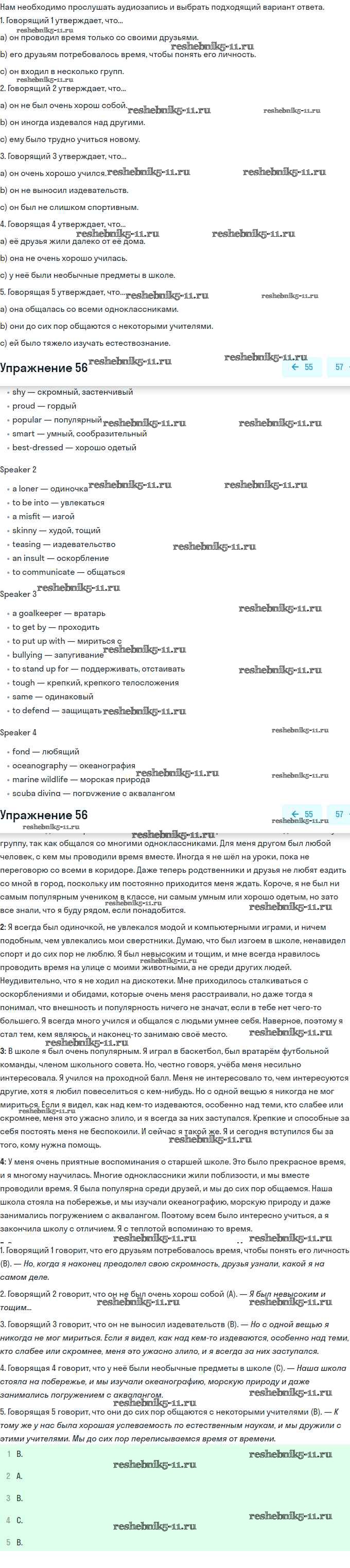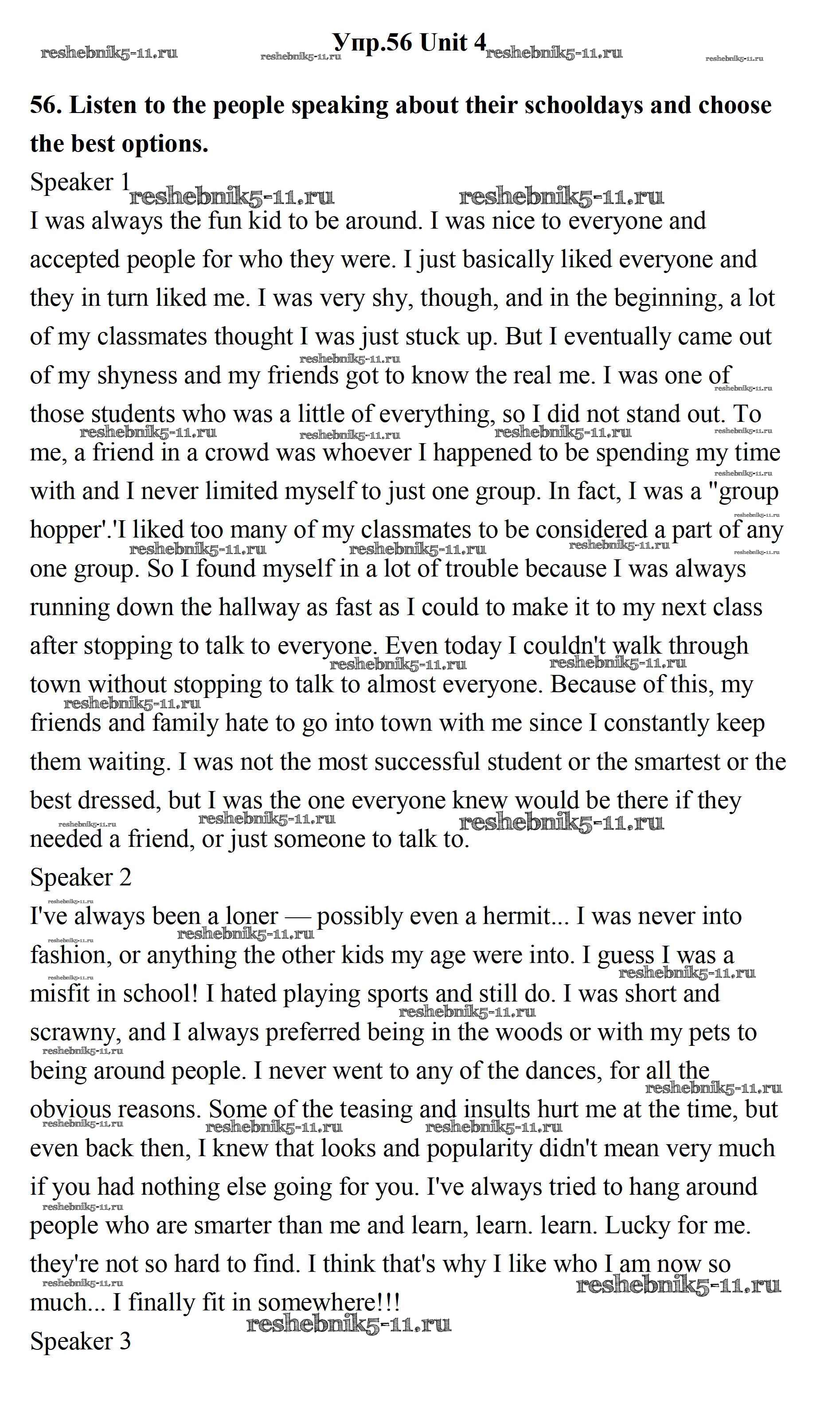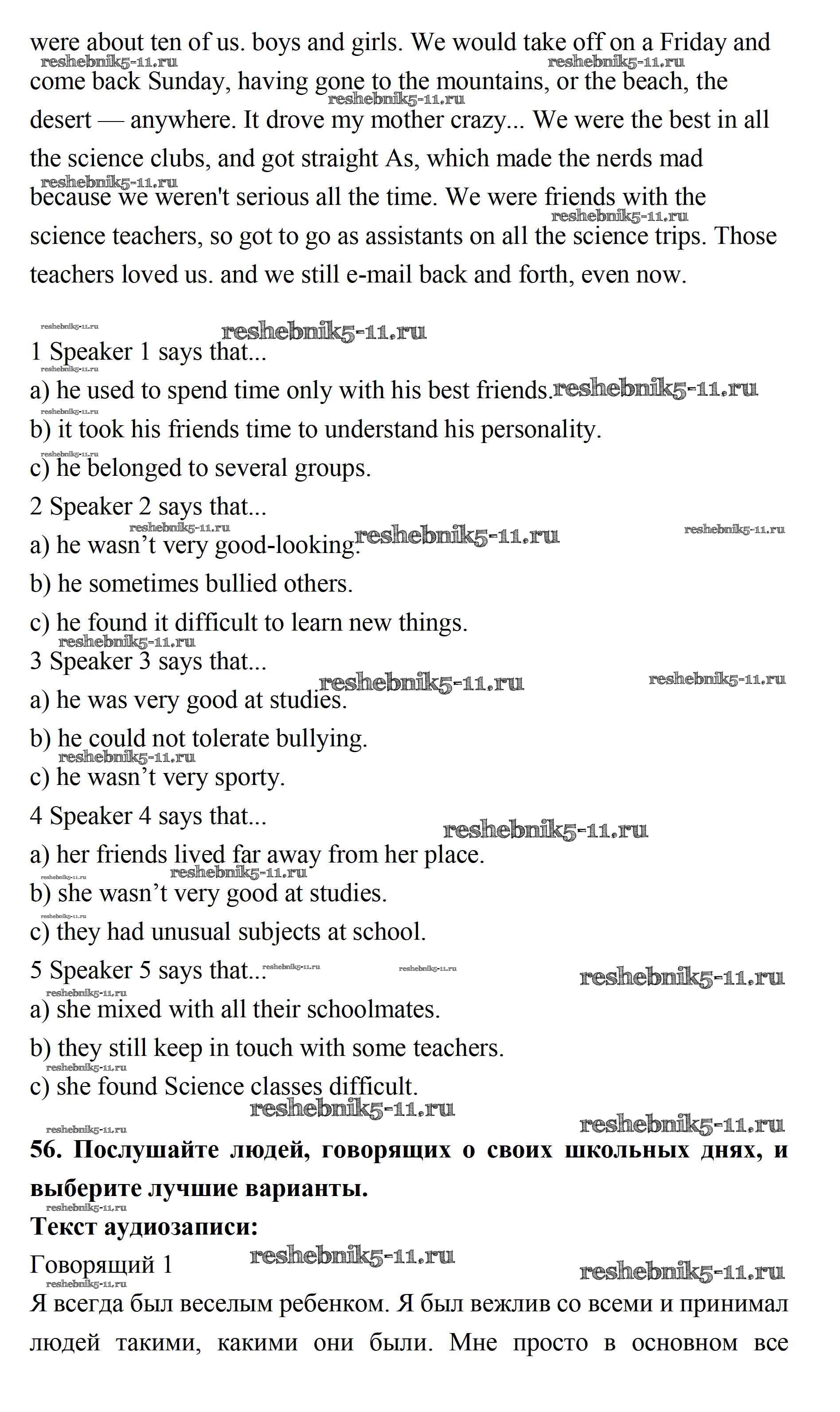 Готовая домашняя работа с ответами по Английскому языку за 11 класс Биболетова, Бабушис, Снежко Учебник Enjoy English Дрофа 2017 ФГОС - Unit 4. What Are Your Whereаbouts? 56