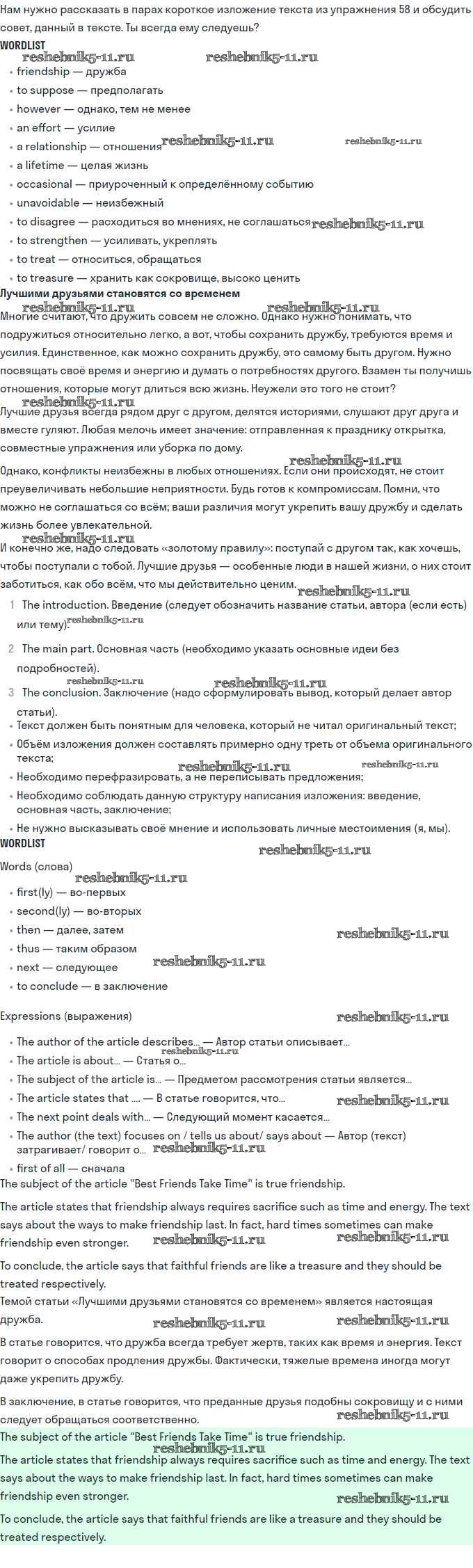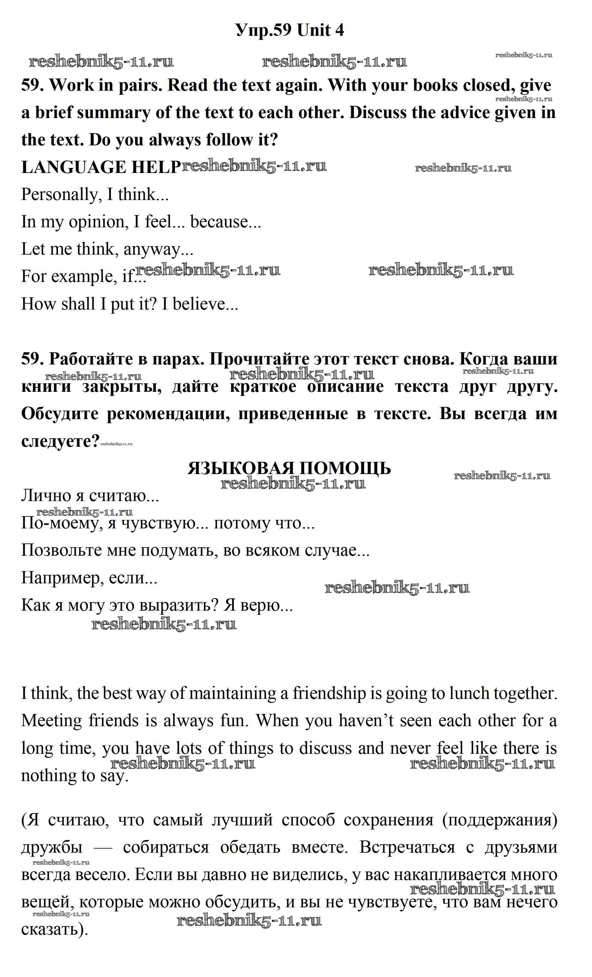 Готовая домашняя работа с ответами по Английскому языку за 11 класс Биболетова, Бабушис, Снежко Учебник Enjoy English Дрофа 2017 ФГОС - Unit 4. What Are Your Whereаbouts? 59
