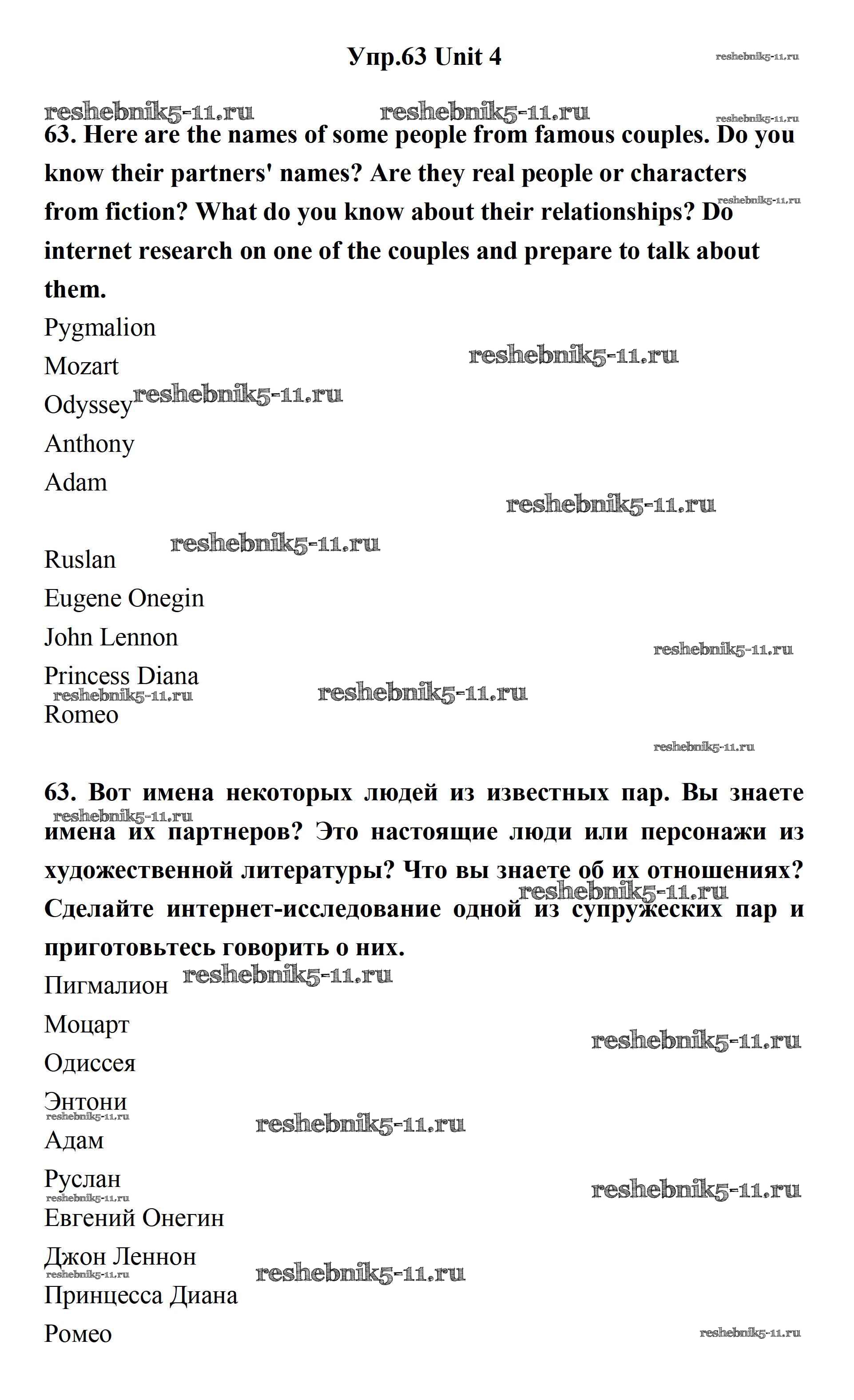 Готовая домашняя работа с ответами по Английскому языку за 11 класс Биболетова, Бабушис, Снежко Учебник Enjoy English Дрофа 2017 ФГОС - Unit 4. What Are Your Whereаbouts? 63