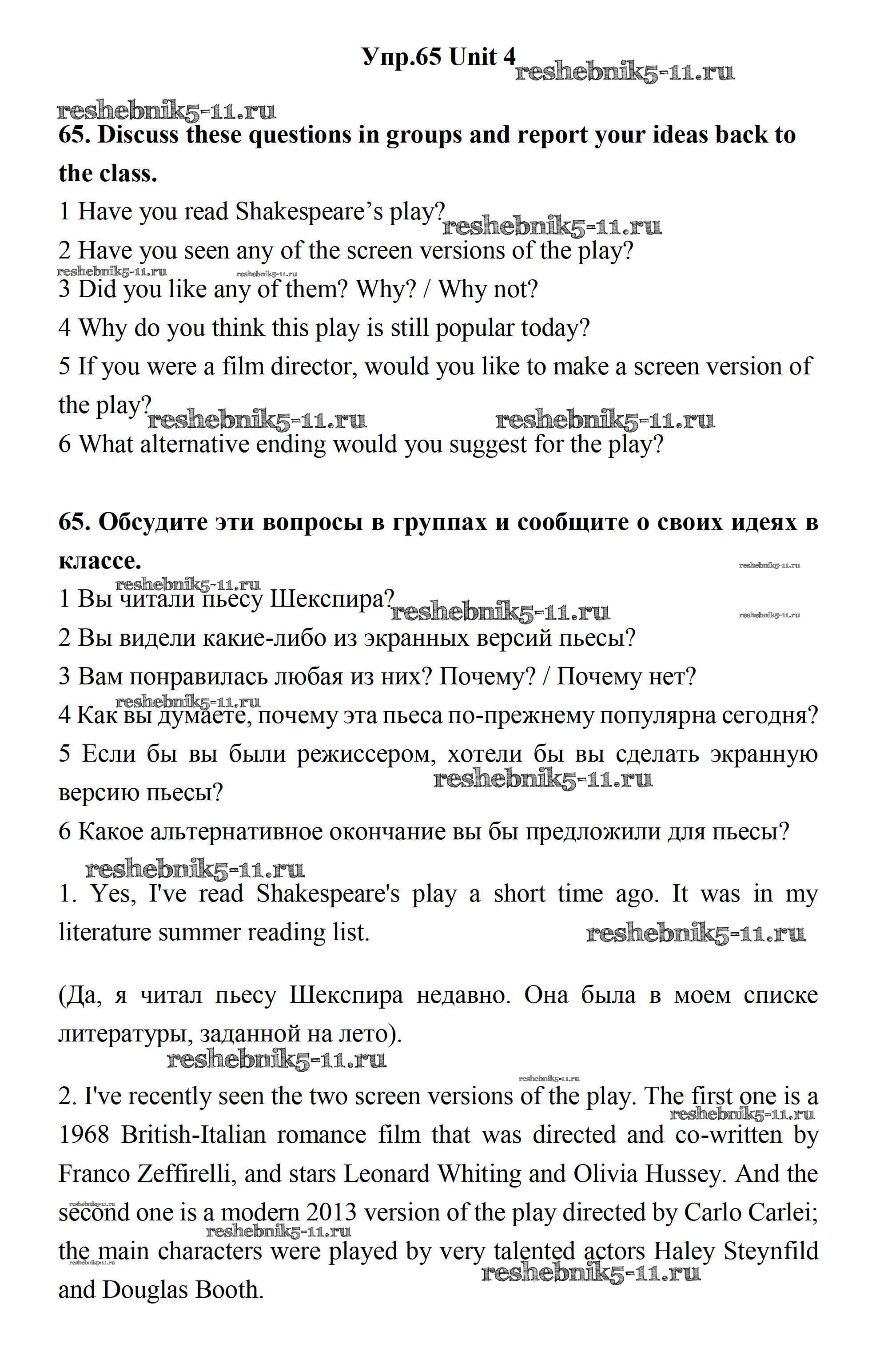 Готовая домашняя работа с ответами по Английскому языку за 11 класс Биболетова, Бабушис, Снежко Учебник Enjoy English Дрофа 2017 ФГОС - Unit 4. What Are Your Whereаbouts? 65