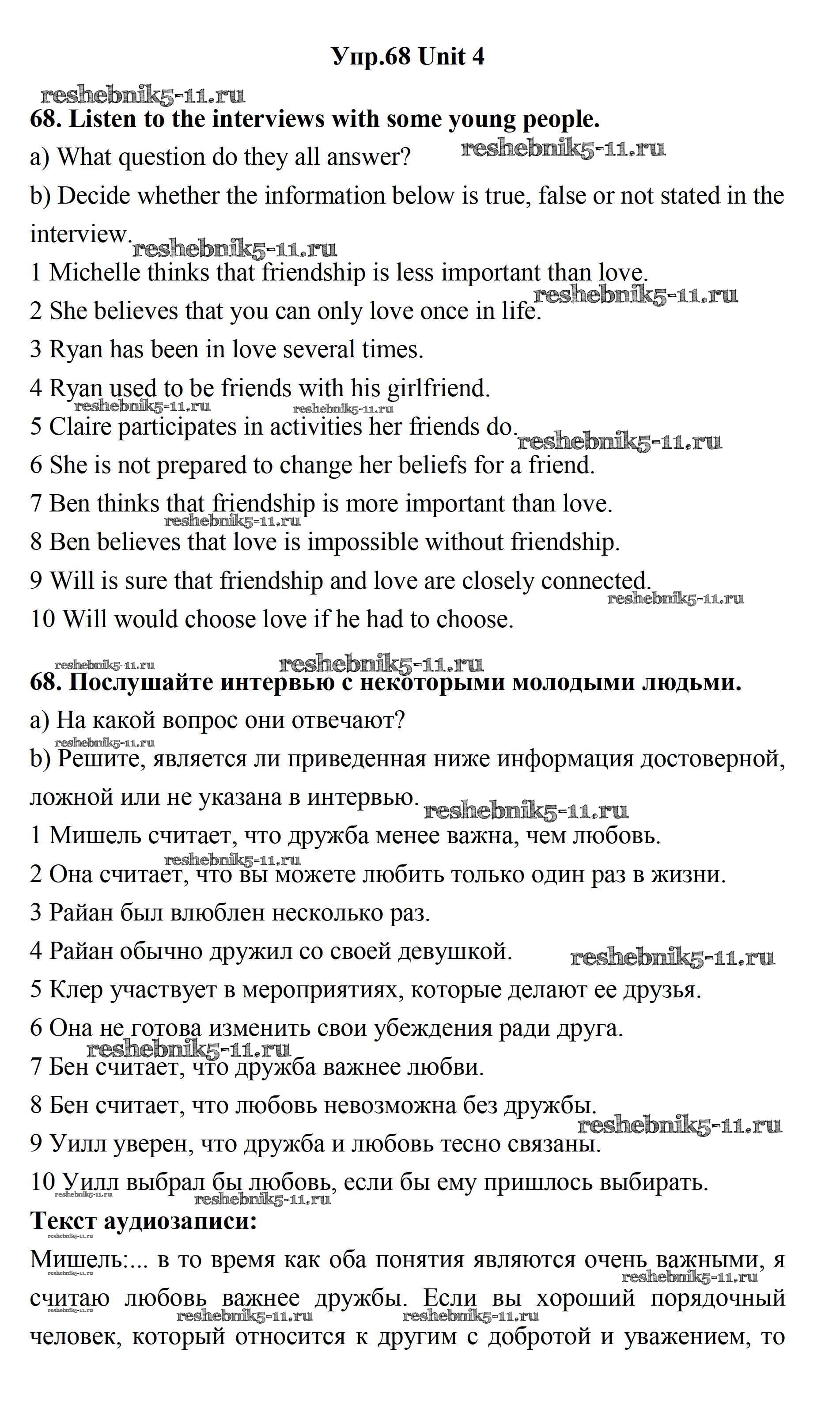 Готовая домашняя работа с ответами по Английскому языку за 11 класс Биболетова, Бабушис, Снежко Учебник Enjoy English Дрофа 2017 ФГОС - Unit 4. What Are Your Whereаbouts? 68
