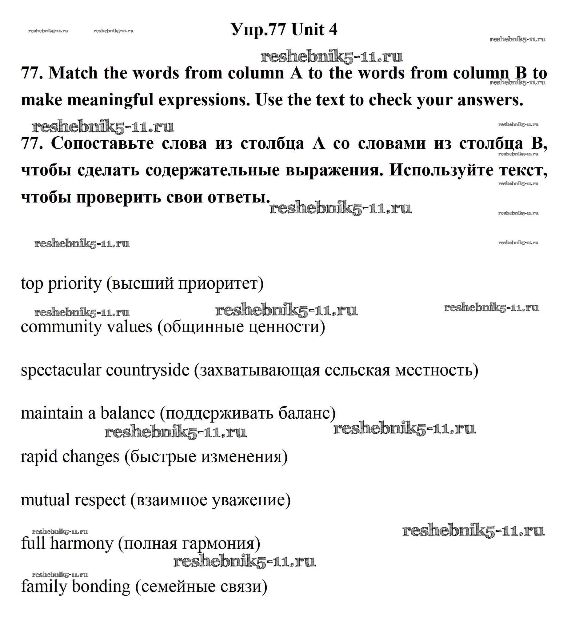 Готовая домашняя работа с ответами по Английскому языку за 11 класс Биболетова, Бабушис, Снежко Учебник Enjoy English Дрофа 2017 ФГОС - Unit 4. What Are Your Whereаbouts? 77