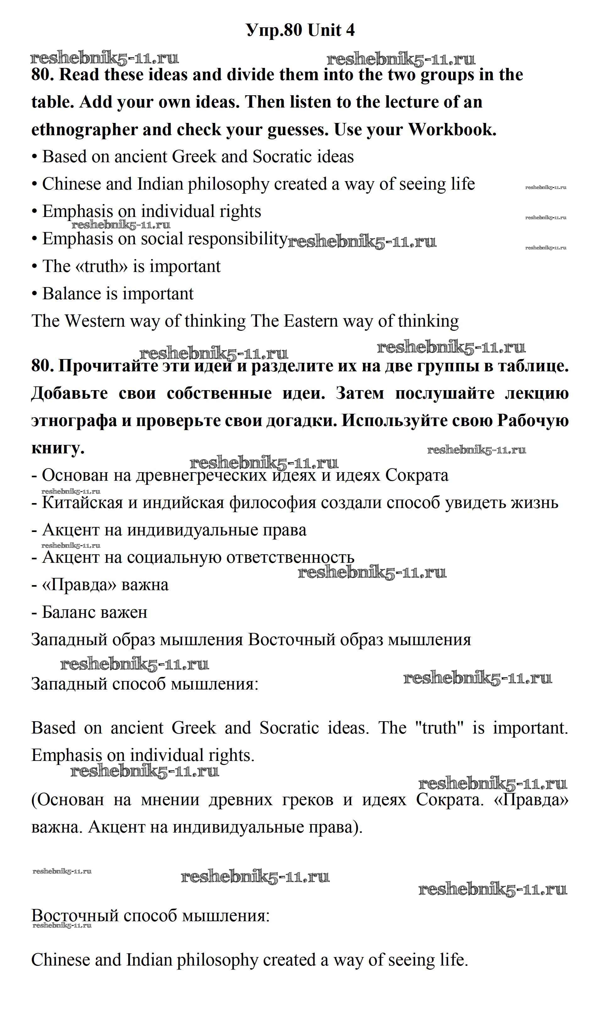Готовая домашняя работа с ответами по Английскому языку за 11 класс Биболетова, Бабушис, Снежко Учебник Enjoy English Дрофа 2017 ФГОС - Unit 4. What Are Your Whereаbouts? 80