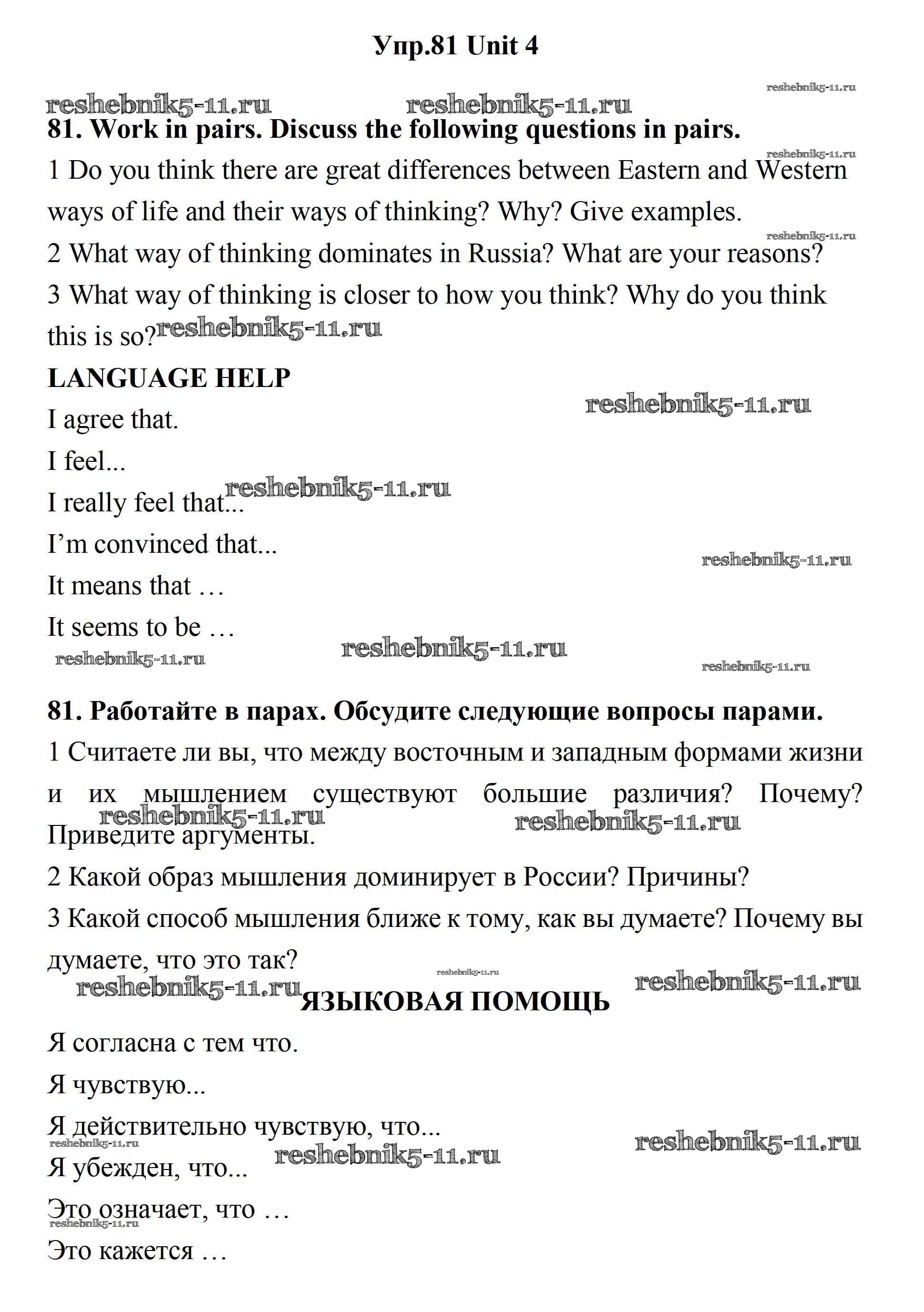 Готовая домашняя работа с ответами по Английскому языку за 11 класс Биболетова, Бабушис, Снежко Учебник Enjoy English Дрофа 2017 ФГОС - Unit 4. What Are Your Whereаbouts? 81
