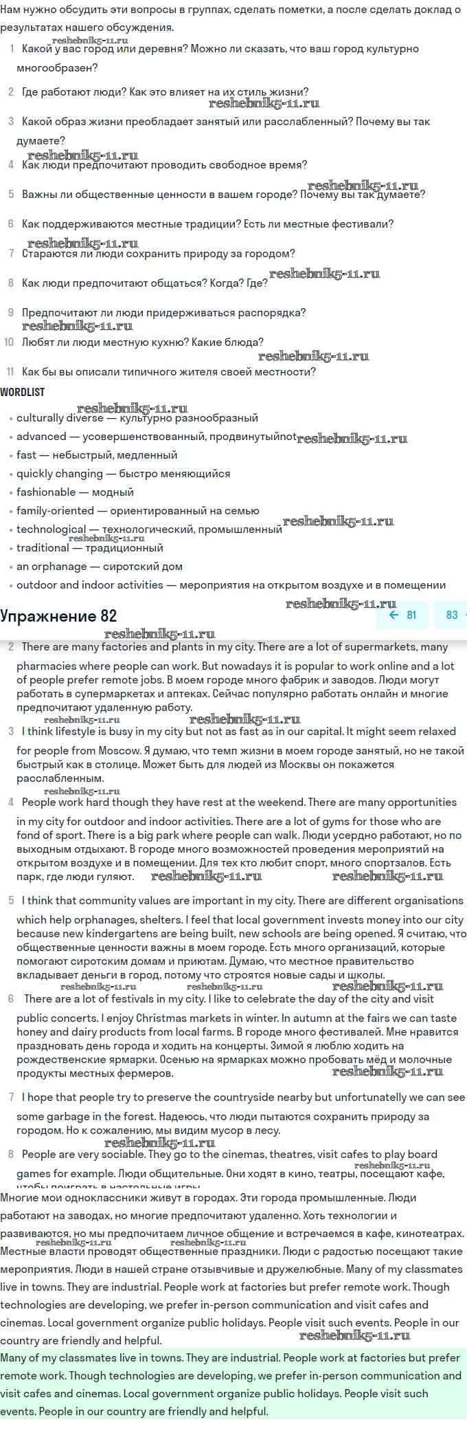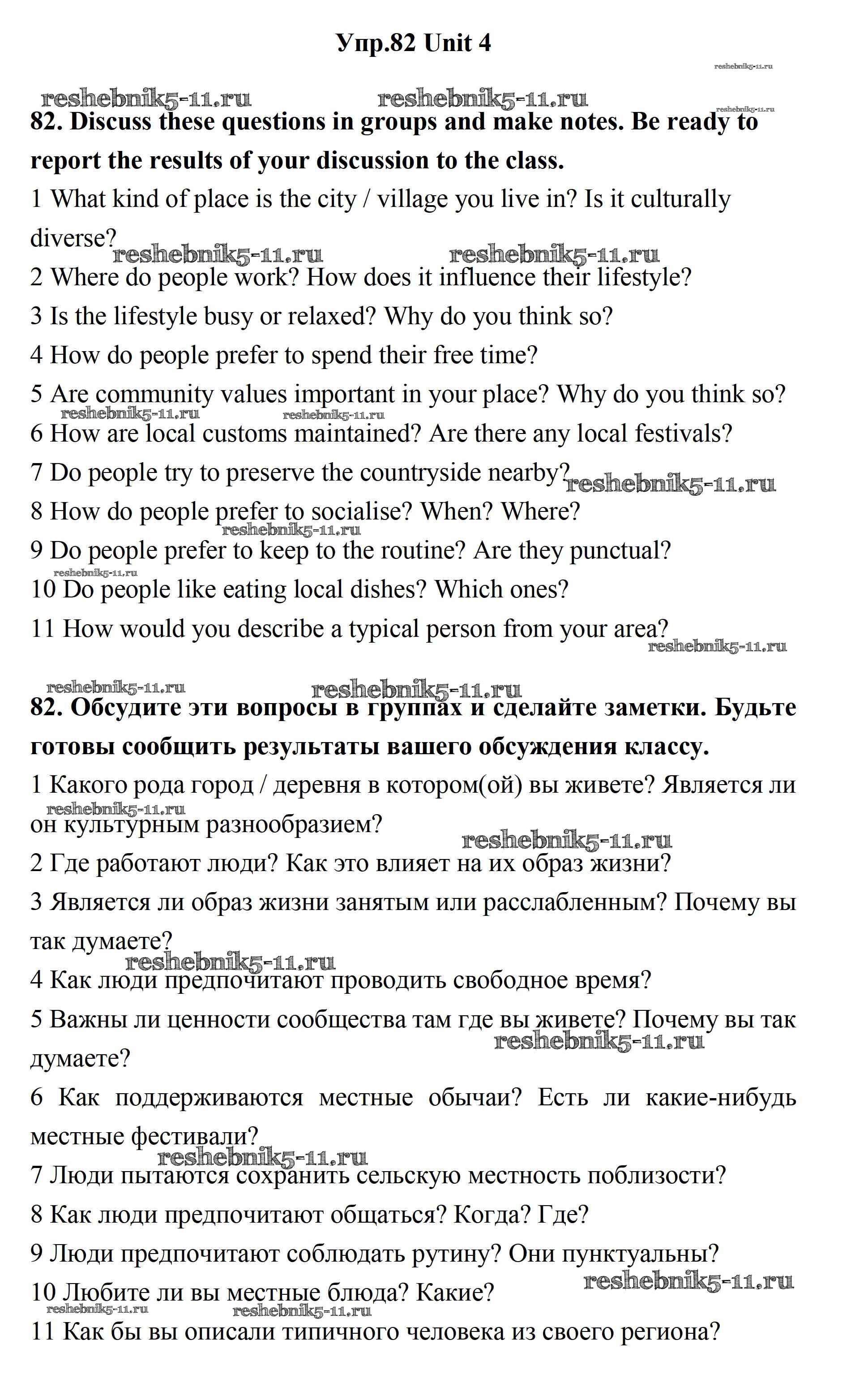 Готовая домашняя работа с ответами по Английскому языку за 11 класс Биболетова, Бабушис, Снежко Учебник Enjoy English Дрофа 2017 ФГОС - Unit 4. What Are Your Whereаbouts? 82