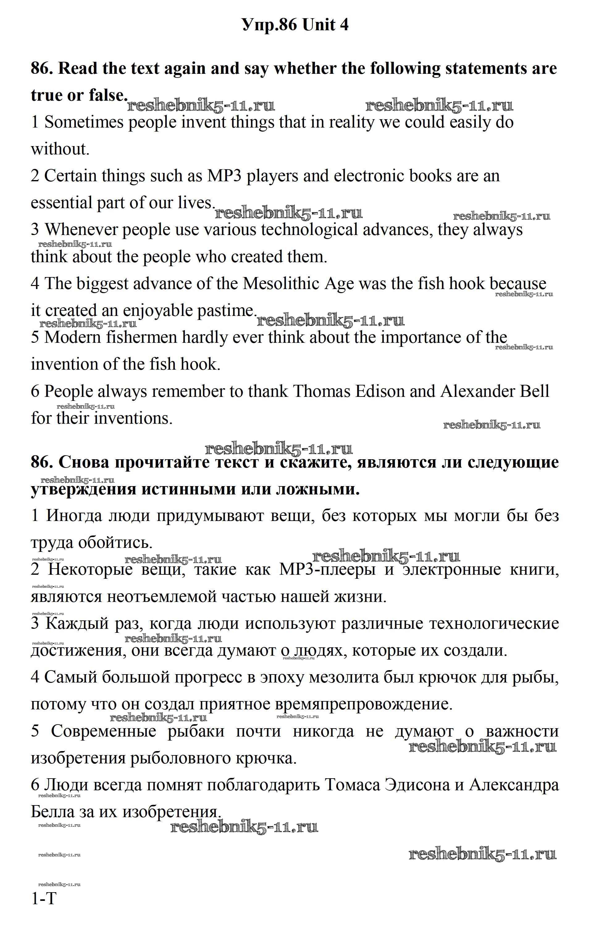 Готовая домашняя работа с ответами по Английскому языку за 11 класс Биболетова, Бабушис, Снежко Учебник Enjoy English Дрофа 2017 ФГОС - Unit 4. What Are Your Whereаbouts? 86