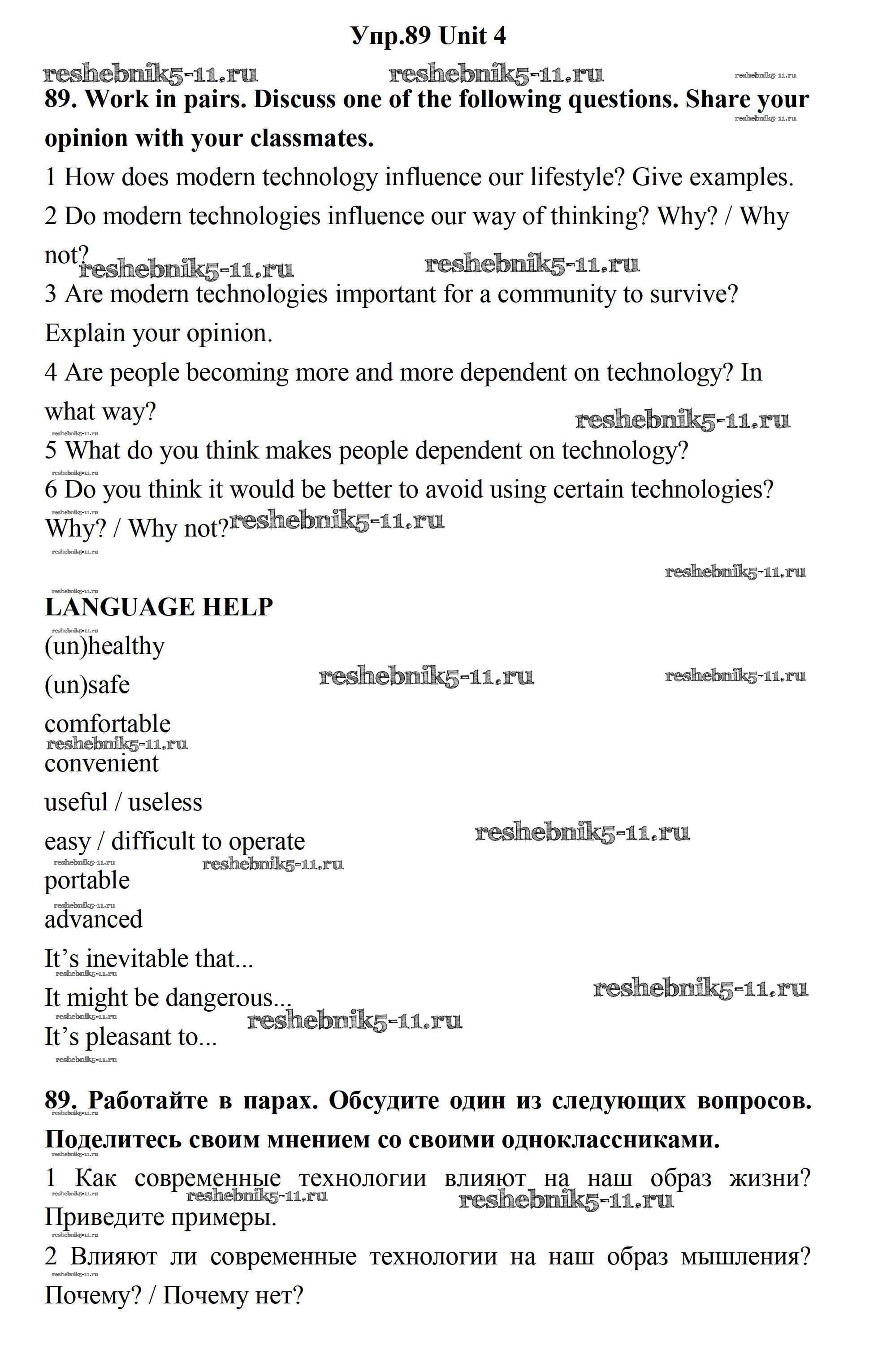 Готовая домашняя работа с ответами по Английскому языку за 11 класс Биболетова, Бабушис, Снежко Учебник Enjoy English Дрофа 2017 ФГОС - Unit 4. What Are Your Whereаbouts? 89