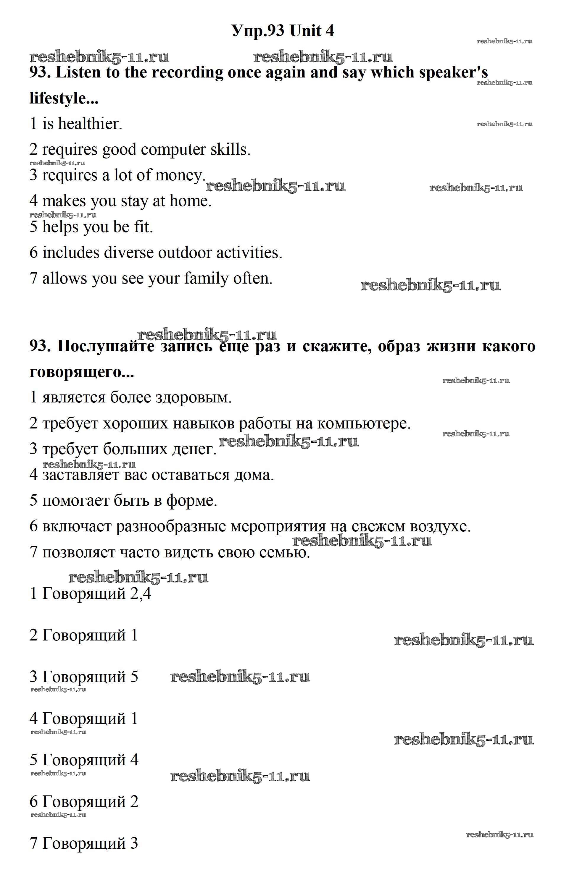 Готовая домашняя работа с ответами по Английскому языку за 11 класс Биболетова, Бабушис, Снежко Учебник Enjoy English Дрофа 2017 ФГОС - Unit 4. What Are Your Whereаbouts? 93