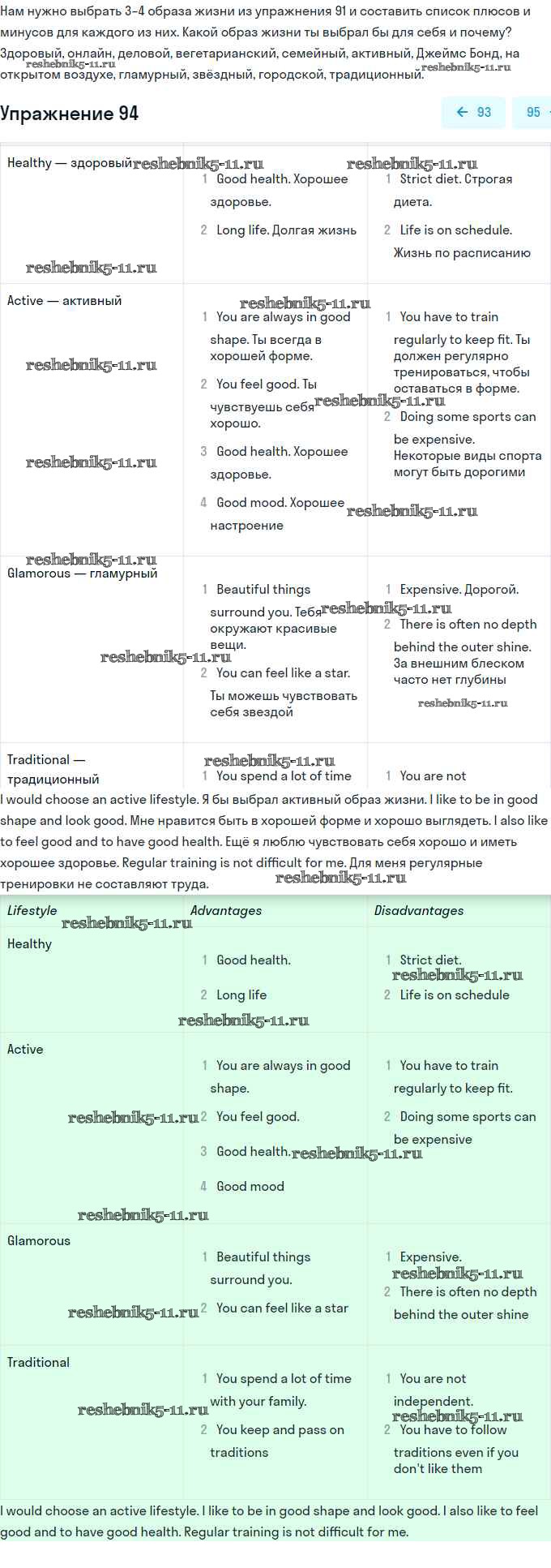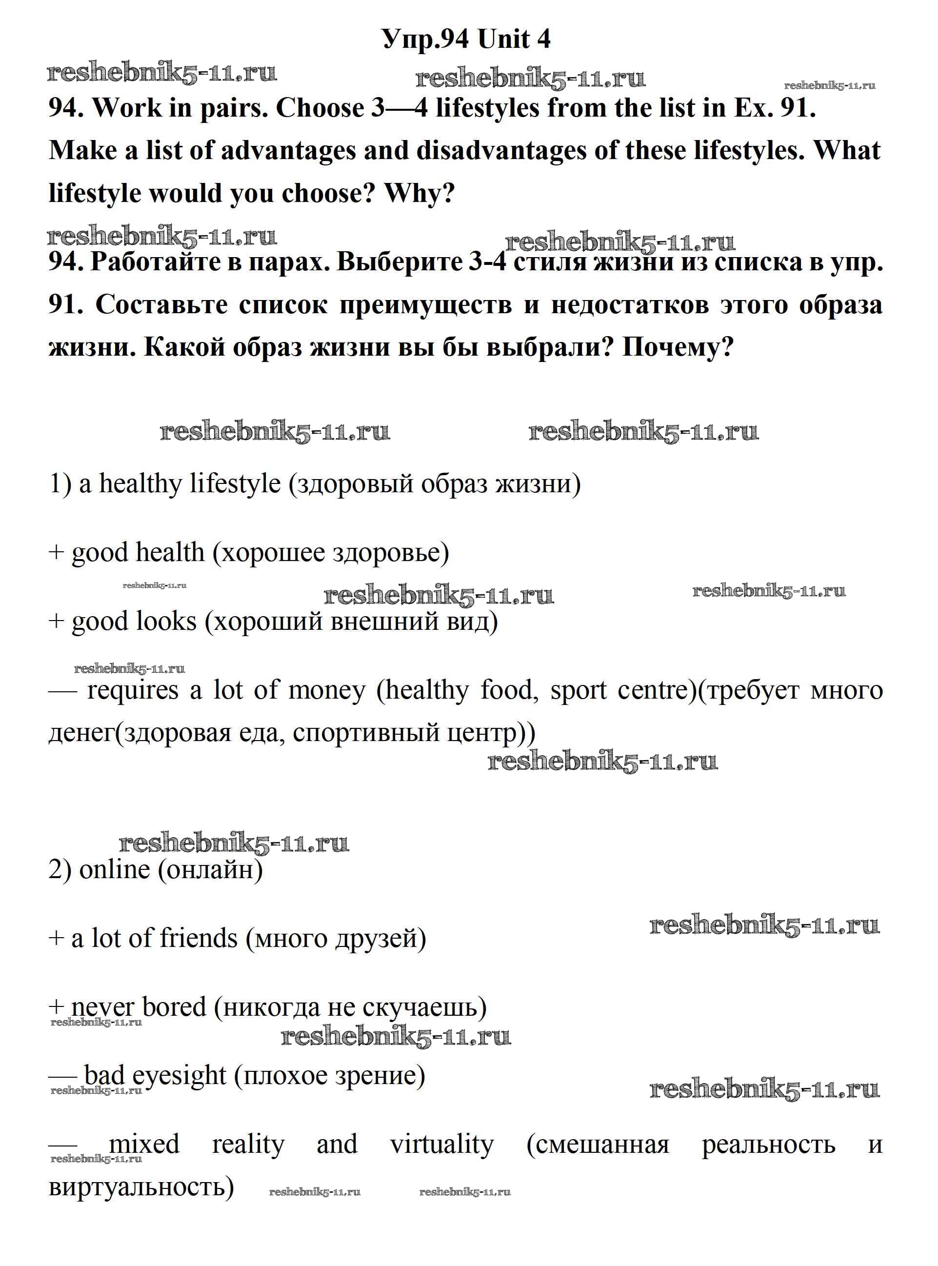 Готовая домашняя работа с ответами по Английскому языку за 11 класс Биболетова, Бабушис, Снежко Учебник Enjoy English Дрофа 2017 ФГОС - Unit 4. What Are Your Whereаbouts? 94