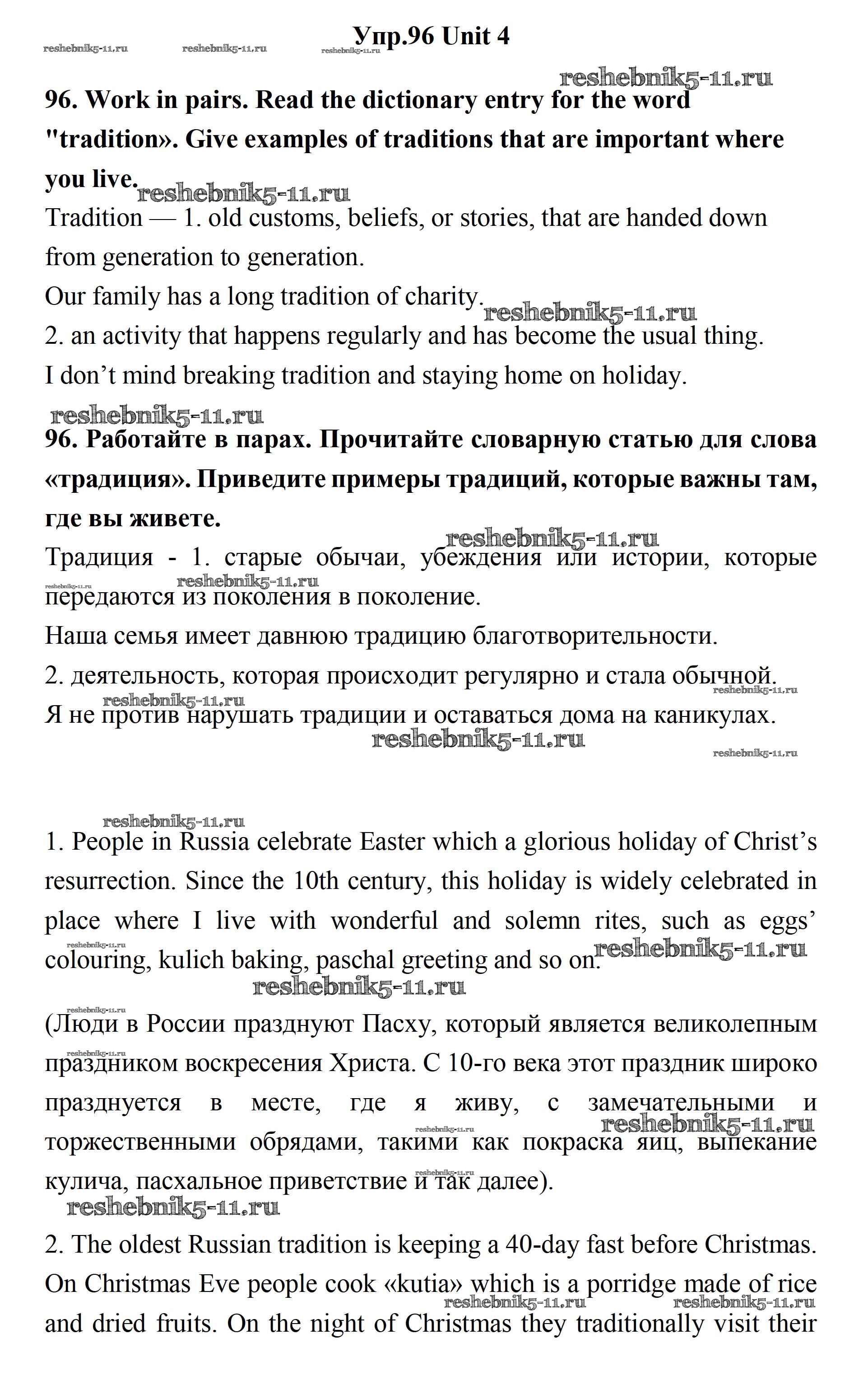 Готовая домашняя работа с ответами по Английскому языку за 11 класс Биболетова, Бабушис, Снежко Учебник Enjoy English Дрофа 2017 ФГОС - Unit 4. What Are Your Whereаbouts? 96