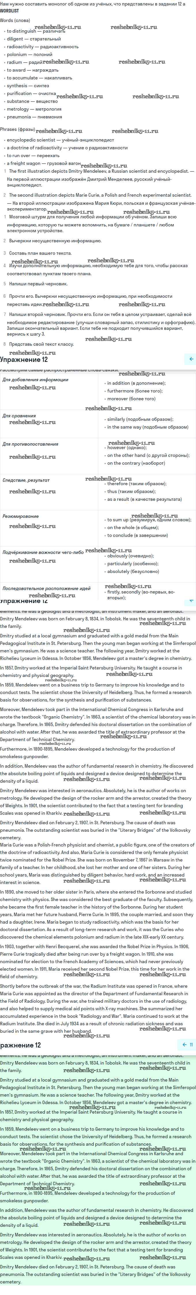 Готовая домашняя работа с ответами по Английскому языку за 11 класс Биболетова, Бабушис, Снежко Учебник Enjoy English Дрофа 2017 ФГОС - What makes chemistry fascinating? 12