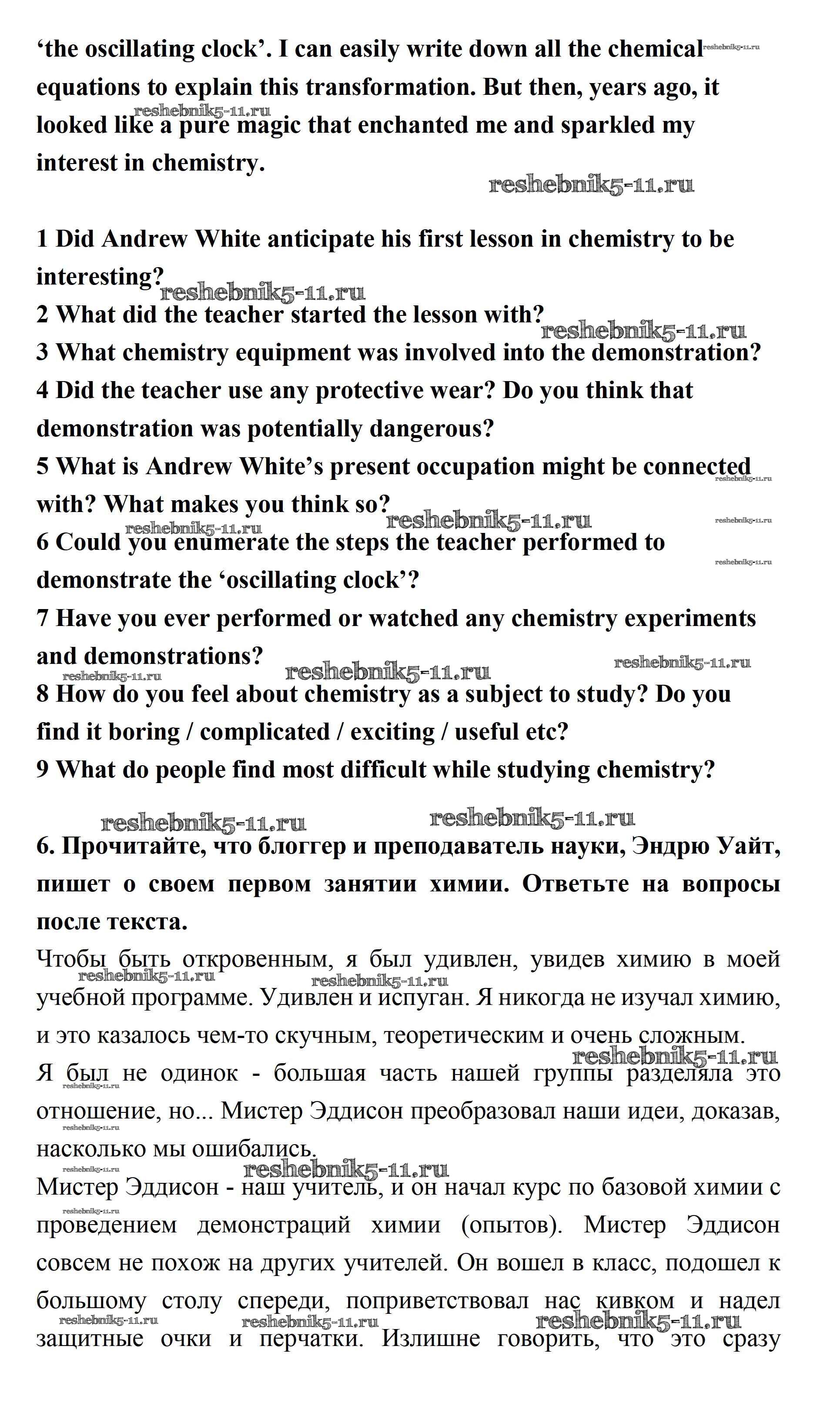 Готовая домашняя работа с ответами по Английскому языку за 11 класс Биболетова, Бабушис, Снежко Учебник Enjoy English Дрофа 2017 ФГОС - What makes chemistry fascinating? 6