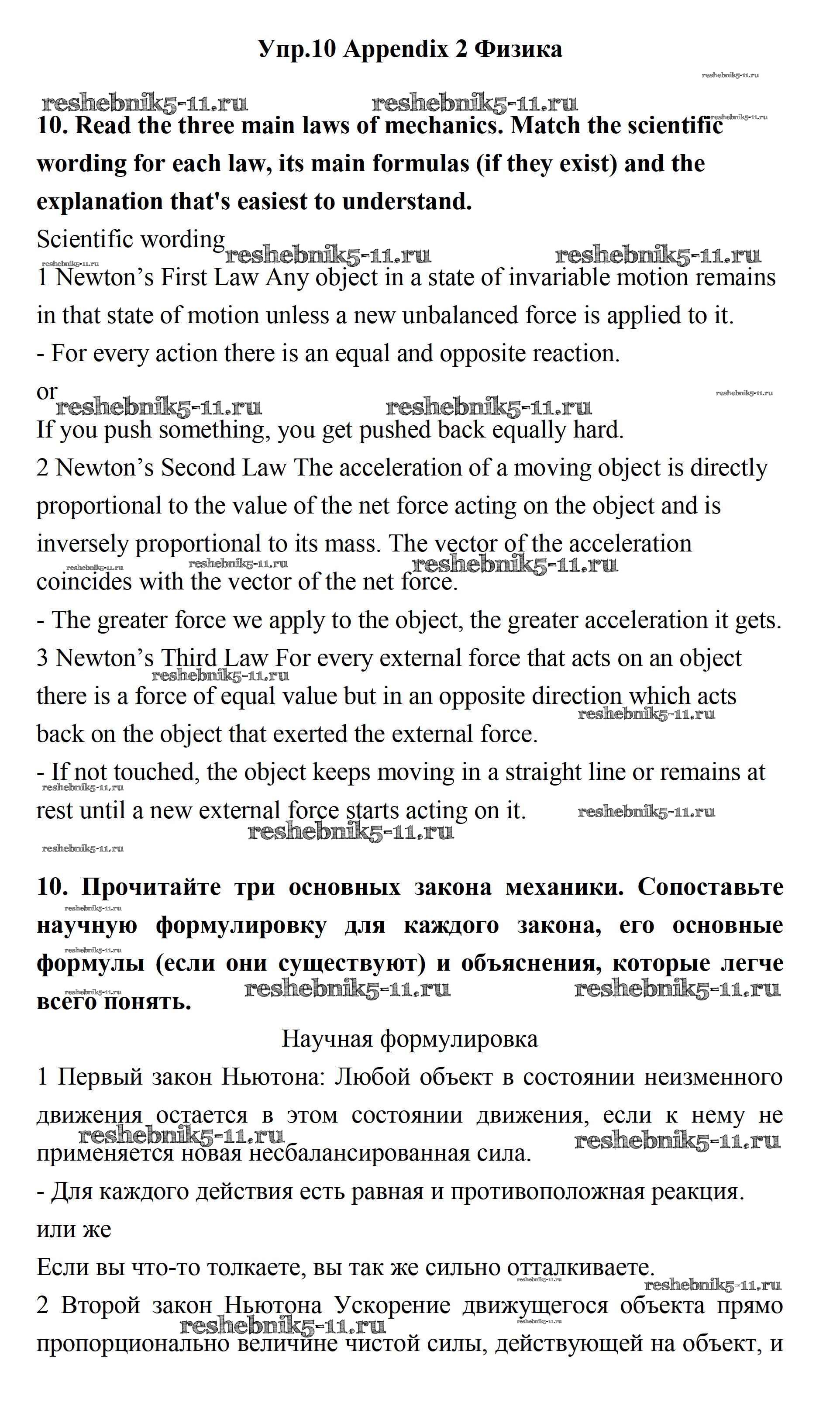 Готовая домашняя работа с ответами по Английскому языку за 11 класс Биболетова, Бабушис, Снежко Учебник Enjoy English Дрофа 2017 ФГОС - Is physics difficult? 10