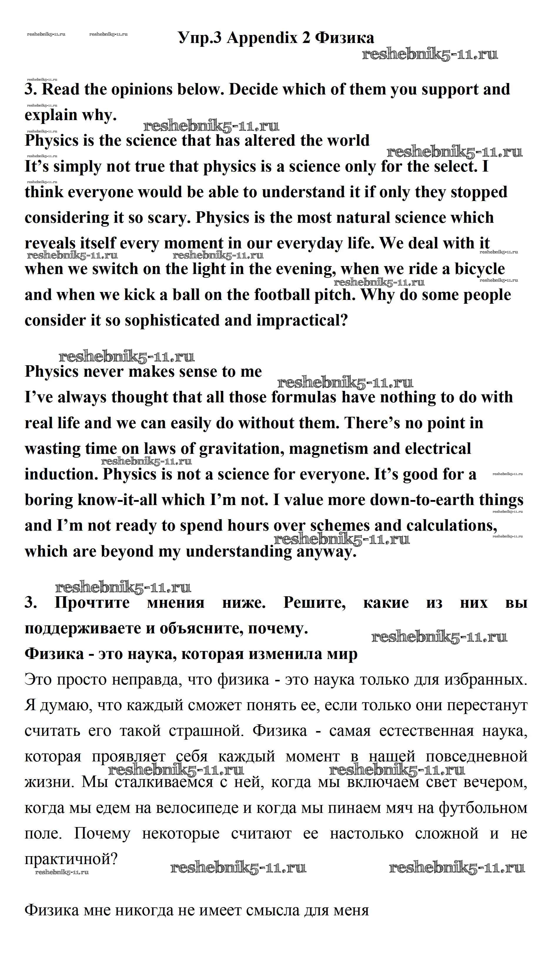Готовая домашняя работа с ответами по Английскому языку за 11 класс Биболетова, Бабушис, Снежко Учебник Enjoy English Дрофа 2017 ФГОС - Is physics difficult? 3