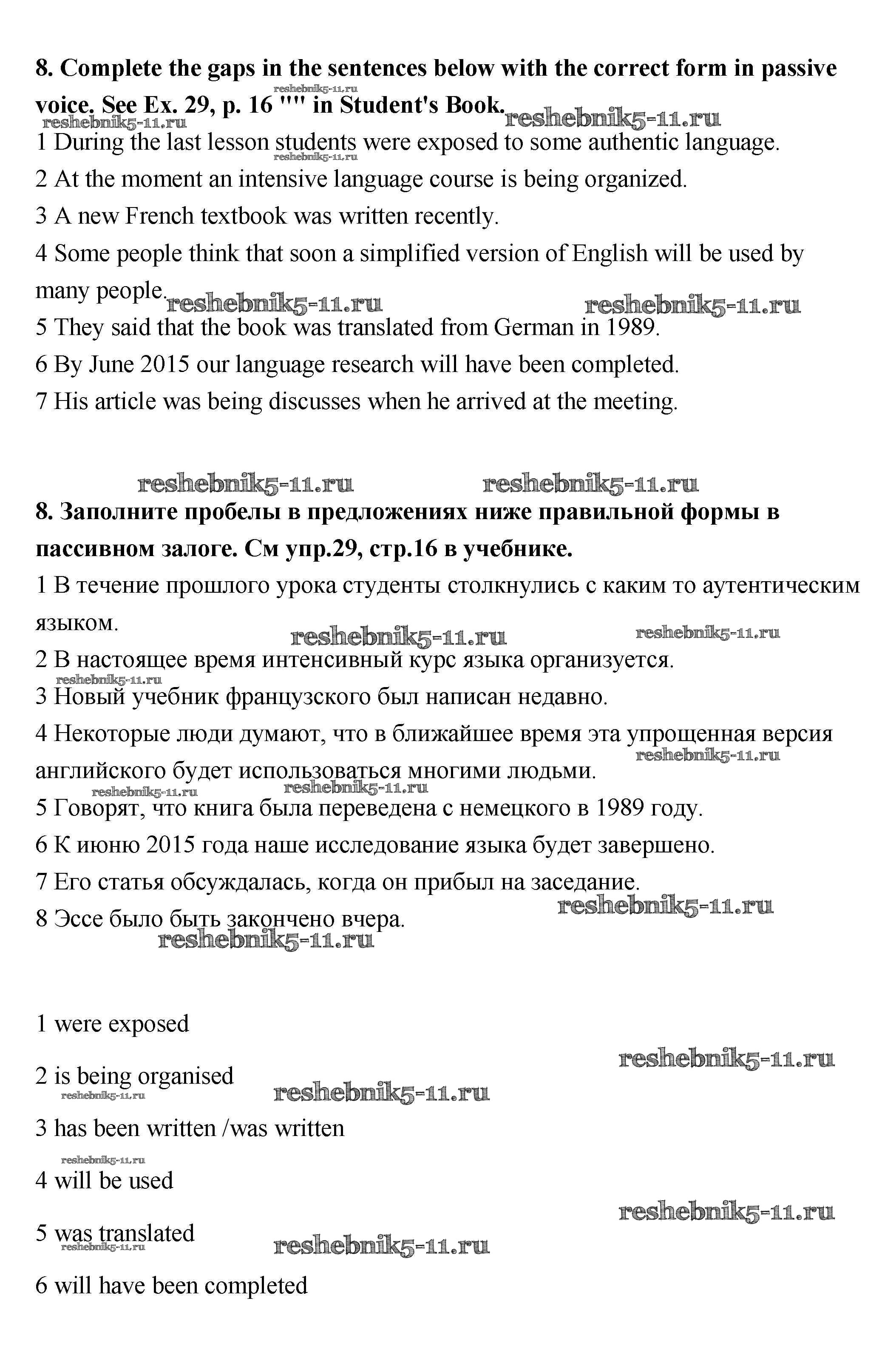 Готовая домашняя работа с ответами по Английскому языку за 11 класс Биболетова, Трубанева Рабочая тетрадь Enjoy English Титул 2013 ФГОС - Section 1 8