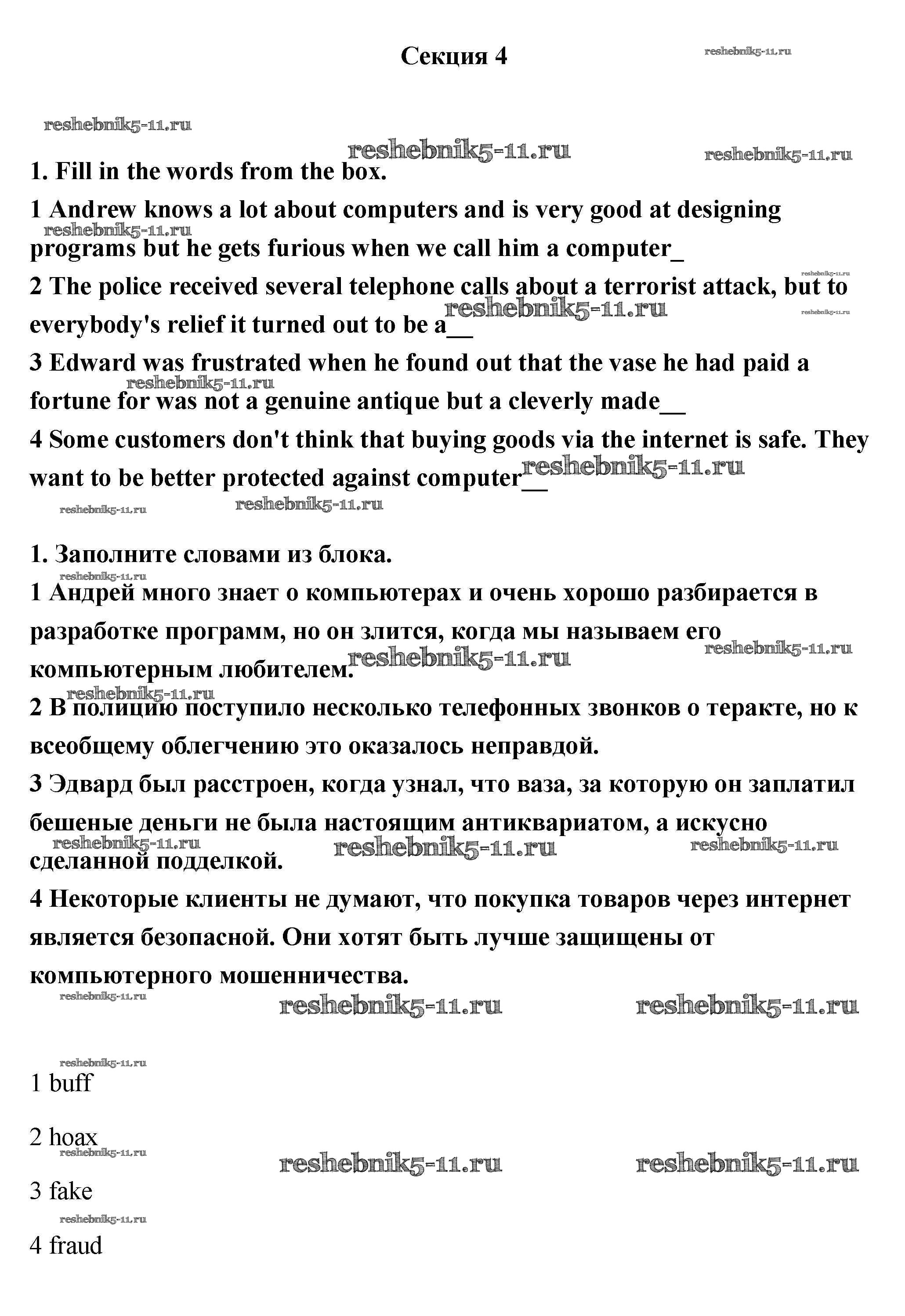 Готовая домашняя работа с ответами по Английскому языку за 11 класс Биболетова, Трубанева Рабочая тетрадь Enjoy English Титул 2013 ФГОС - Section 4 1