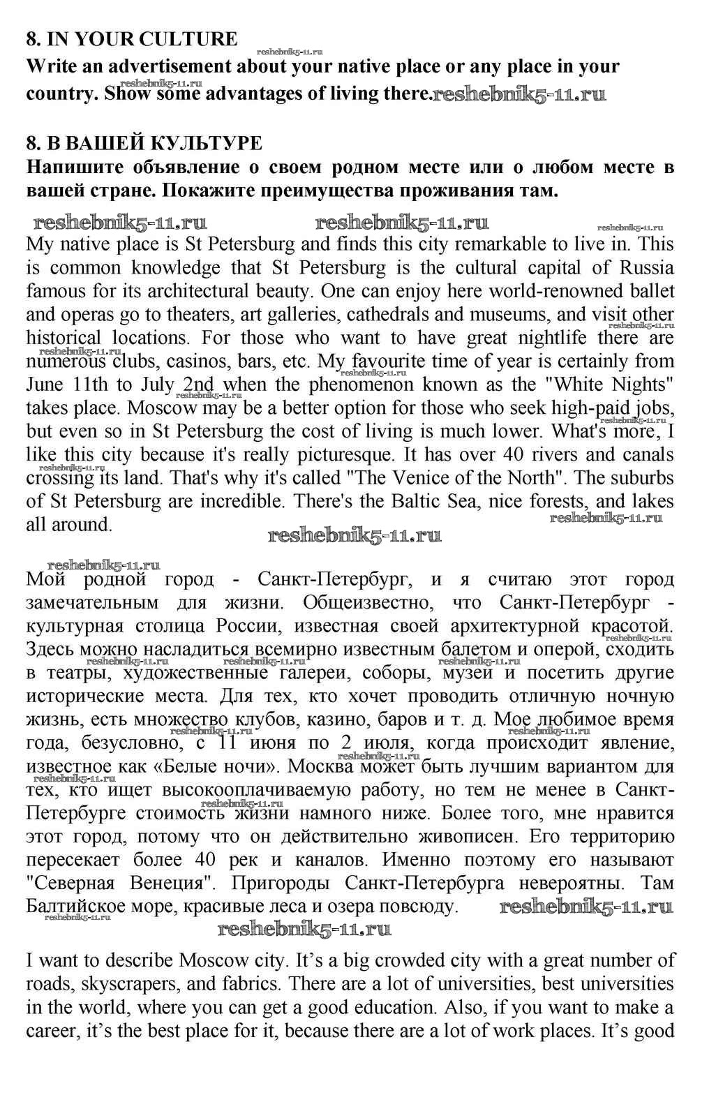 Готовая домашняя работа с ответами по Английскому языку за 10, 11 класс Кузовлев, Лапа, Перегудова Учебник Просвещение 2012 ФГОС - Lesson 4 8
