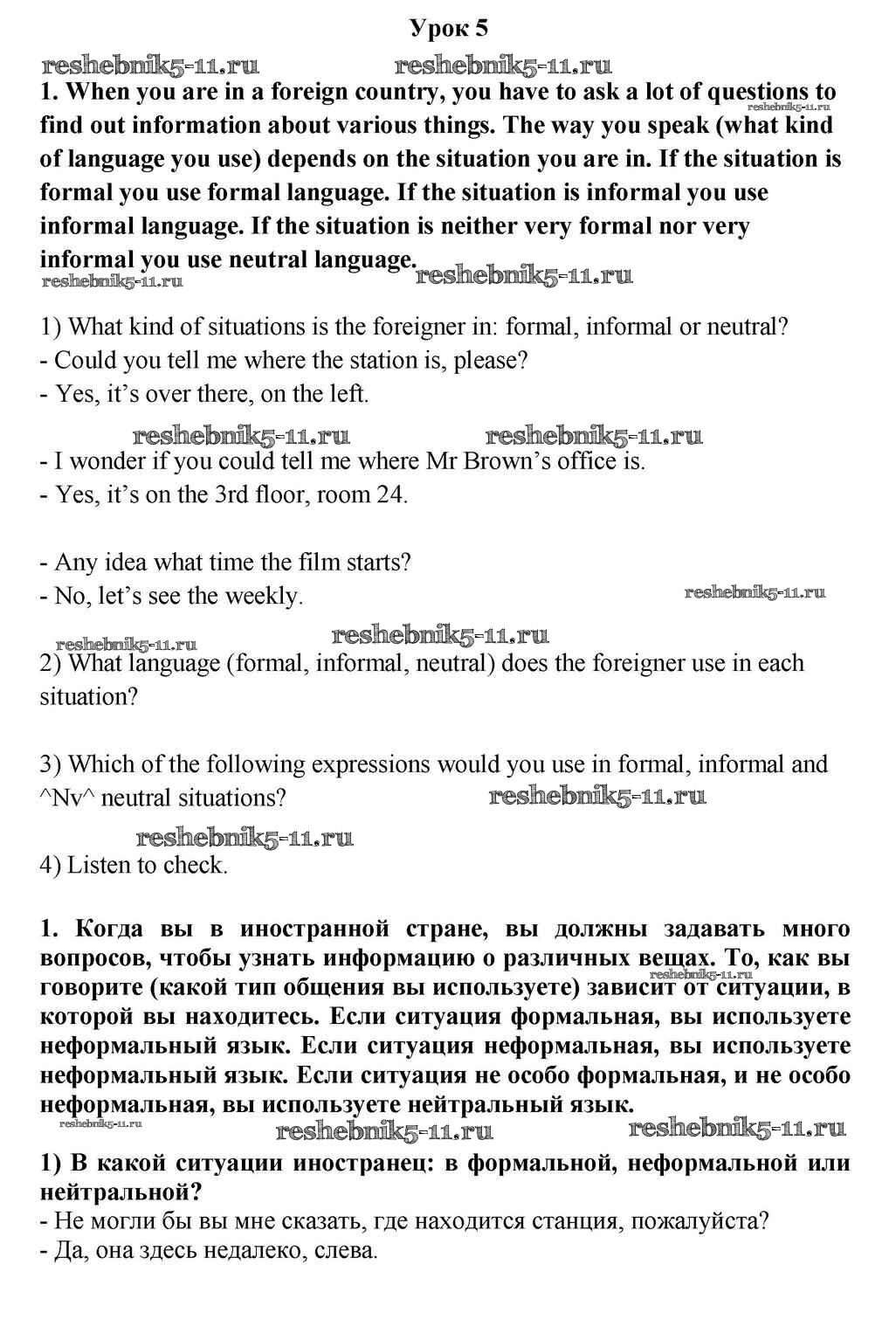 Готовая домашняя работа с ответами по Английскому языку за 10, 11 класс Кузовлев, Лапа, Перегудова Учебник Просвещение 2012 ФГОС - Lesson 5 1