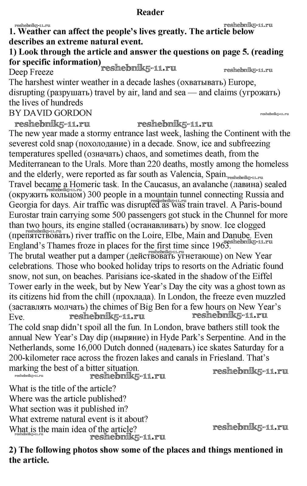 Готовая домашняя работа с ответами по Английскому языку за 10, 11 класс Кузовлев, Лапа, Перегудова Учебник Просвещение 2012 ФГОС - Reader 1