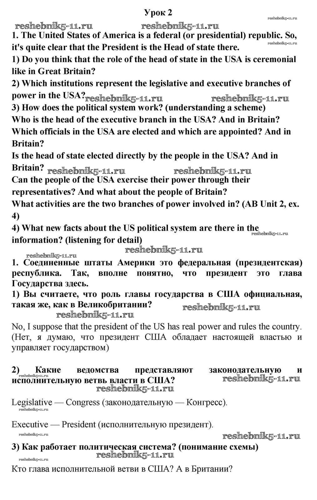 Готовая домашняя работа с ответами по Английскому языку за 10, 11 класс Кузовлев, Лапа, Перегудова Учебник Просвещение 2012 ФГОС - Lesson 2 1
