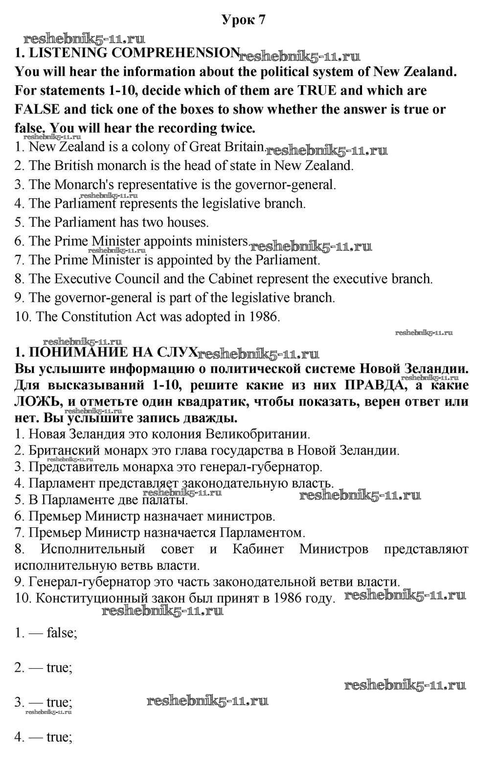 Готовая домашняя работа с ответами по Английскому языку за 10, 11 класс Кузовлев, Лапа, Перегудова Учебник Просвещение 2012 ФГОС - Lesson 7 1