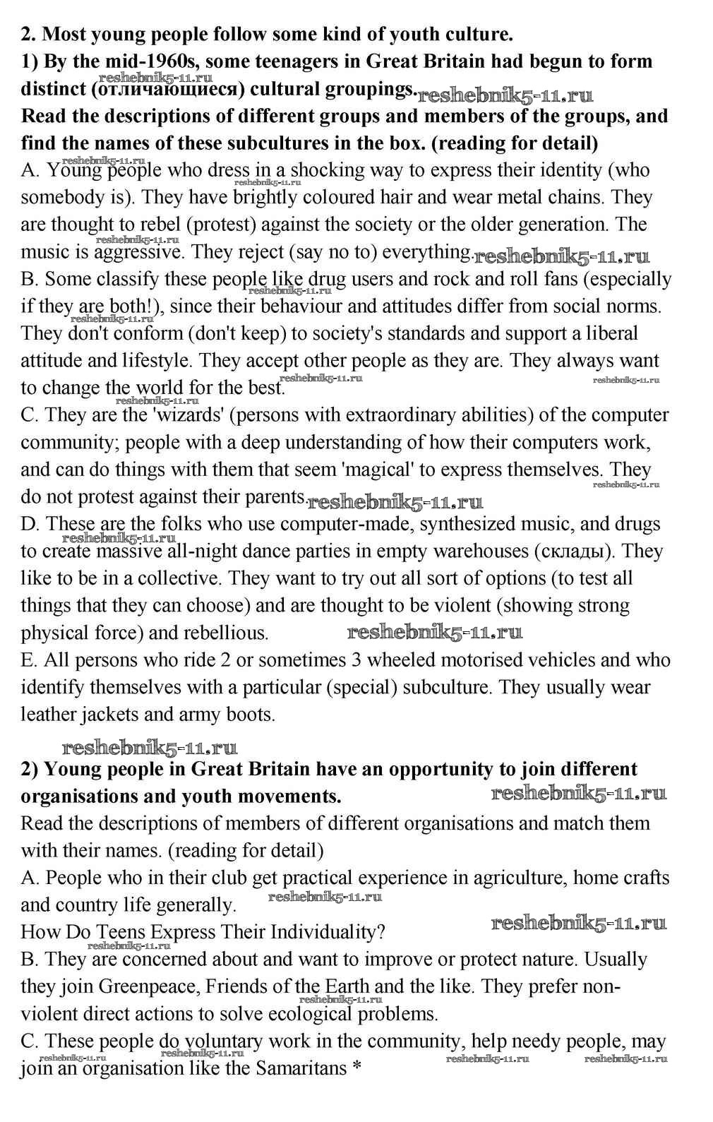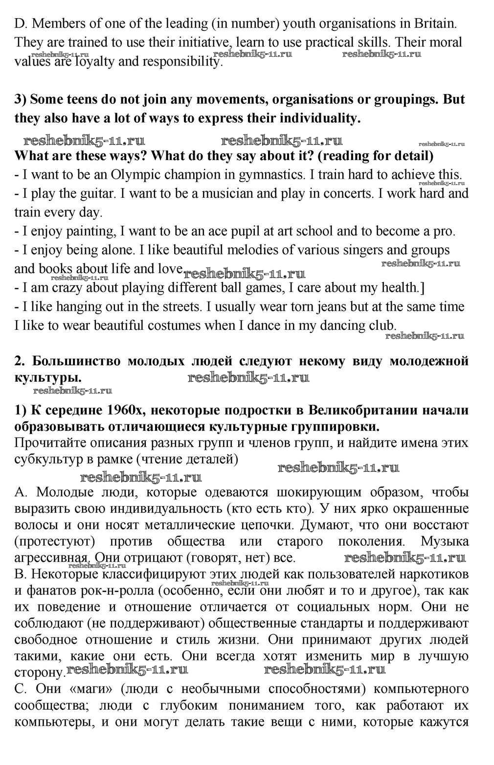 Готовая домашняя работа с ответами по Английскому языку за 10, 11 класс Кузовлев, Лапа, Перегудова Учебник Просвещение 2012 ФГОС - Lesson 1 2