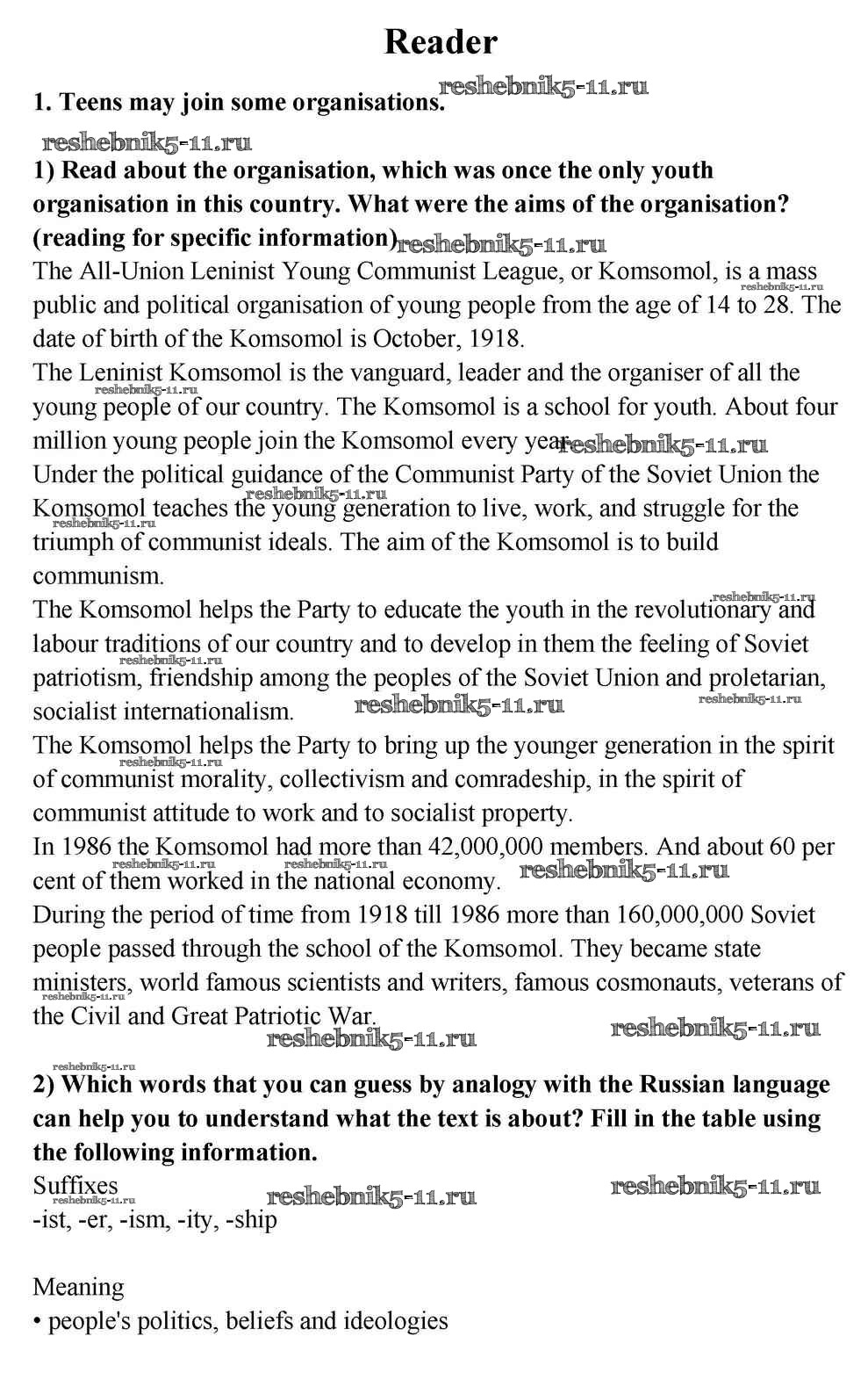 Готовая домашняя работа с ответами по Английскому языку за 10, 11 класс Кузовлев, Лапа, Перегудова Учебник Просвещение 2012 ФГОС - Reader 1