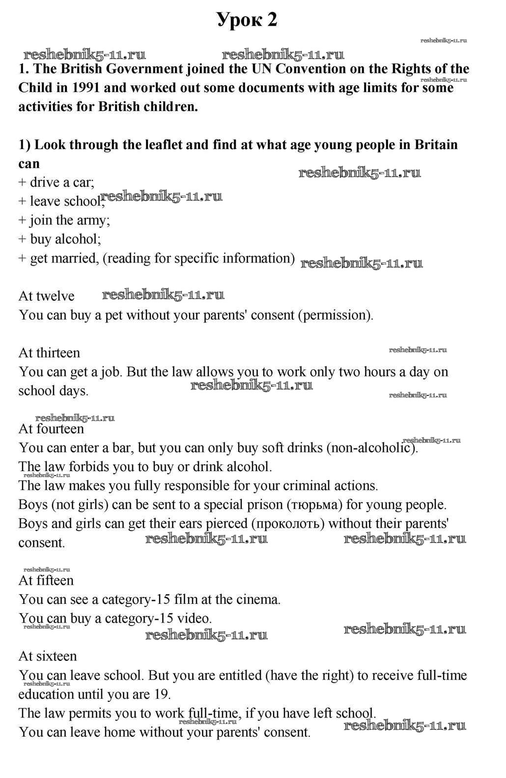 Готовая домашняя работа с ответами по Английскому языку за 10, 11 класс Кузовлев, Лапа, Перегудова Учебник Просвещение 2012 ФГОС - Lesson 2 1