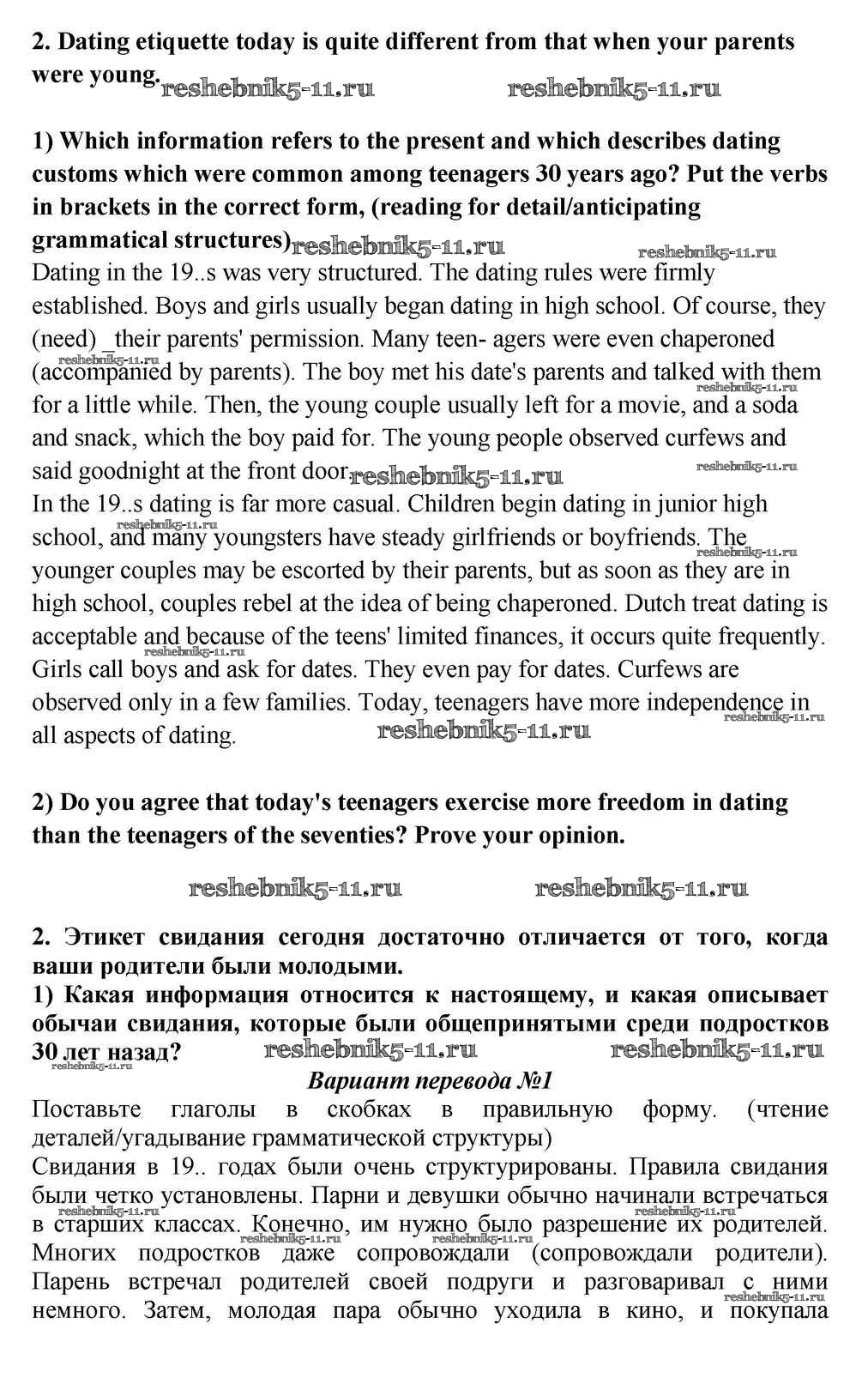 Готовая домашняя работа с ответами по Английскому языку за 10, 11 класс Кузовлев, Лапа, Перегудова Учебник Просвещение 2012 ФГОС - Reading 2