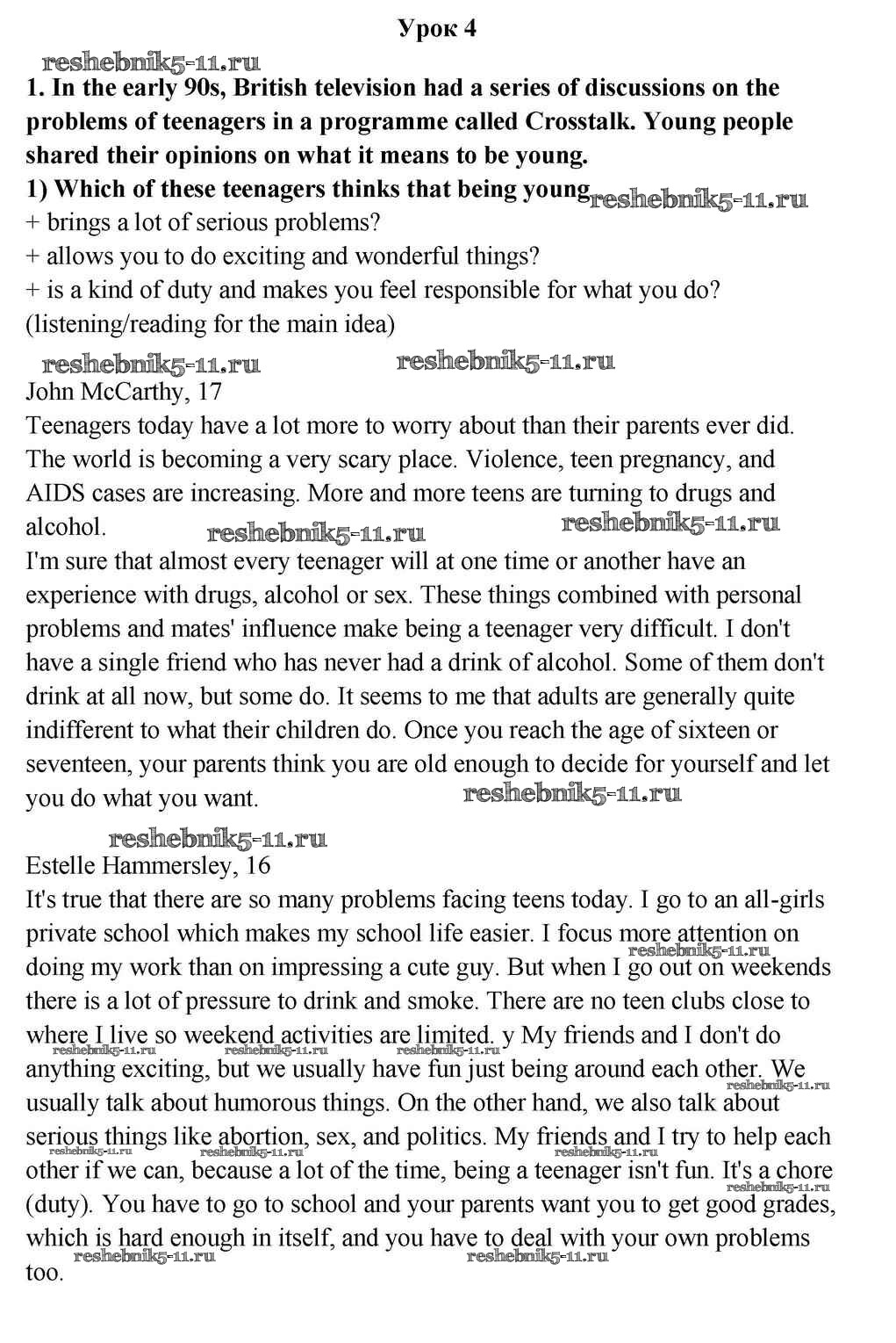 Готовая домашняя работа с ответами по Английскому языку за 10, 11 класс Кузовлев, Лапа, Перегудова Учебник Просвещение 2012 ФГОС - Lesson 4 1