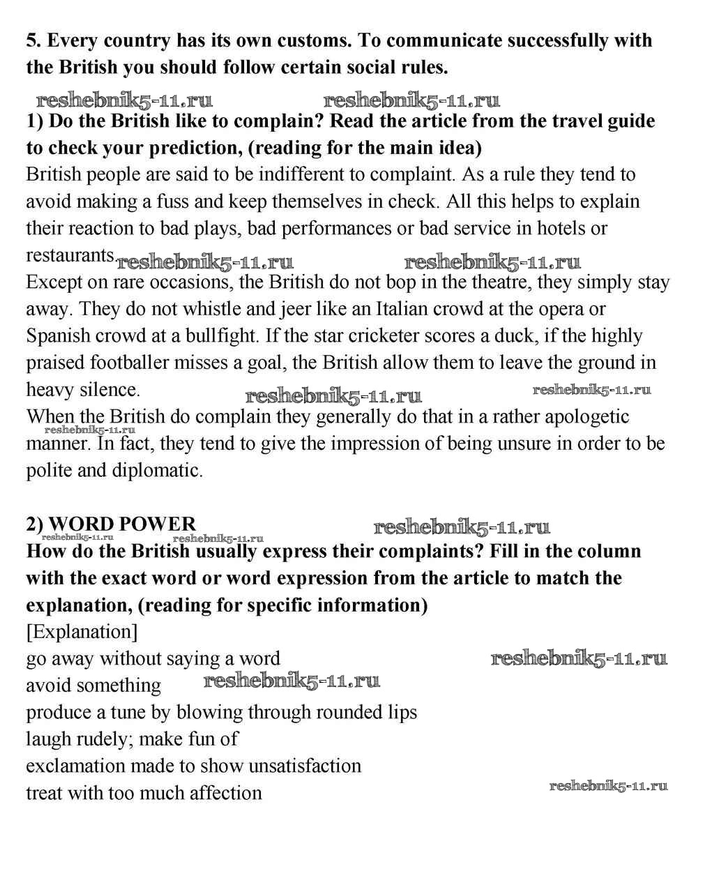 Готовая домашняя работа с ответами по Английскому языку за 10, 11 класс Кузовлев, Лапа, Перегудова Учебник Просвещение 2012 ФГОС - Reader 5