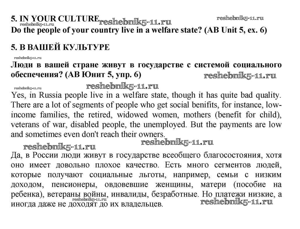 Готовая домашняя работа с ответами по Английскому языку за 10, 11 класс Кузовлев, Лапа, Перегудова Учебник Просвещение 2012 ФГОС - Lesson 5 5