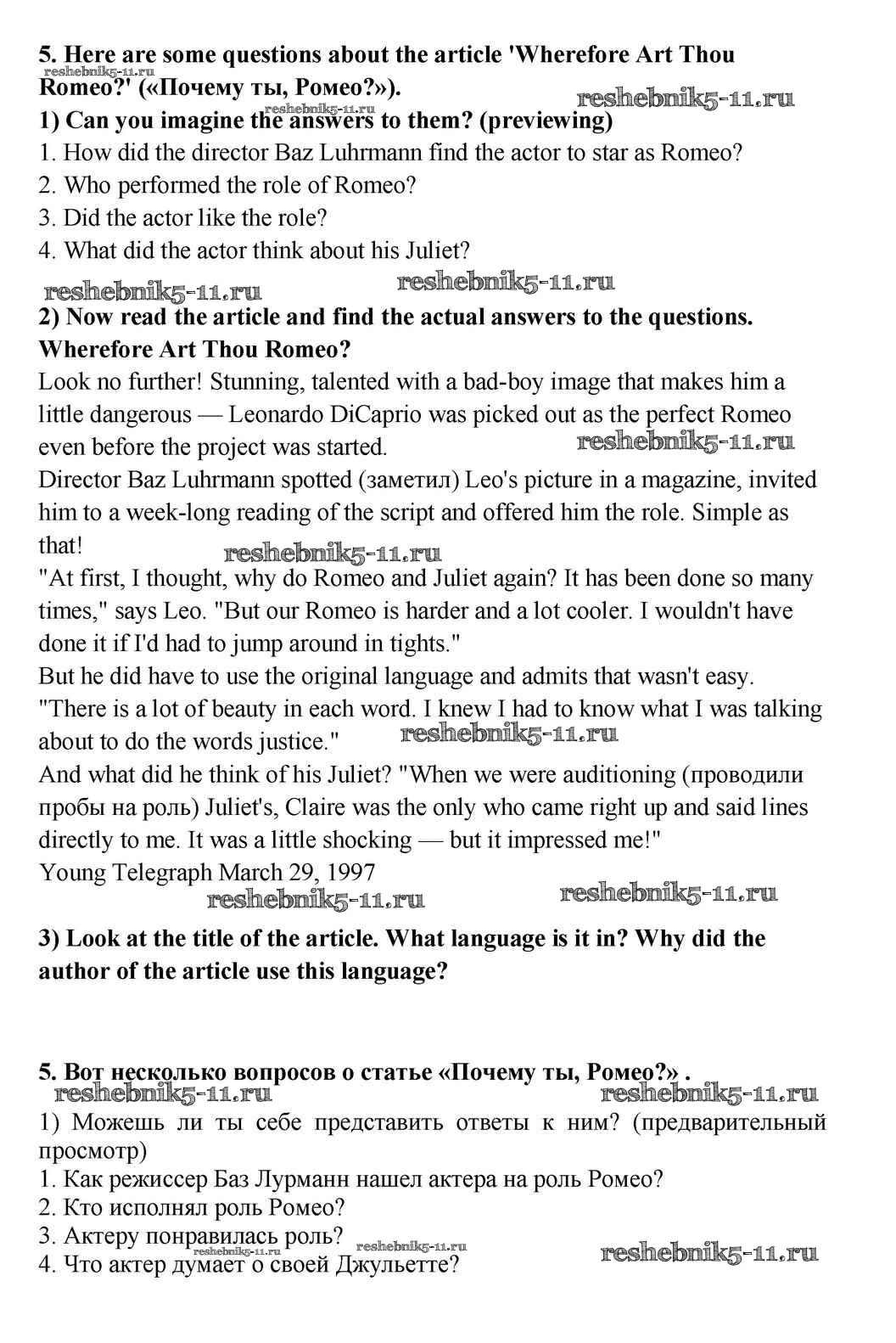 Готовая домашняя работа с ответами по Английскому языку за 10, 11 класс Кузовлев, Лапа, Перегудова Учебник Просвещение 2012 ФГОС - Reading 5