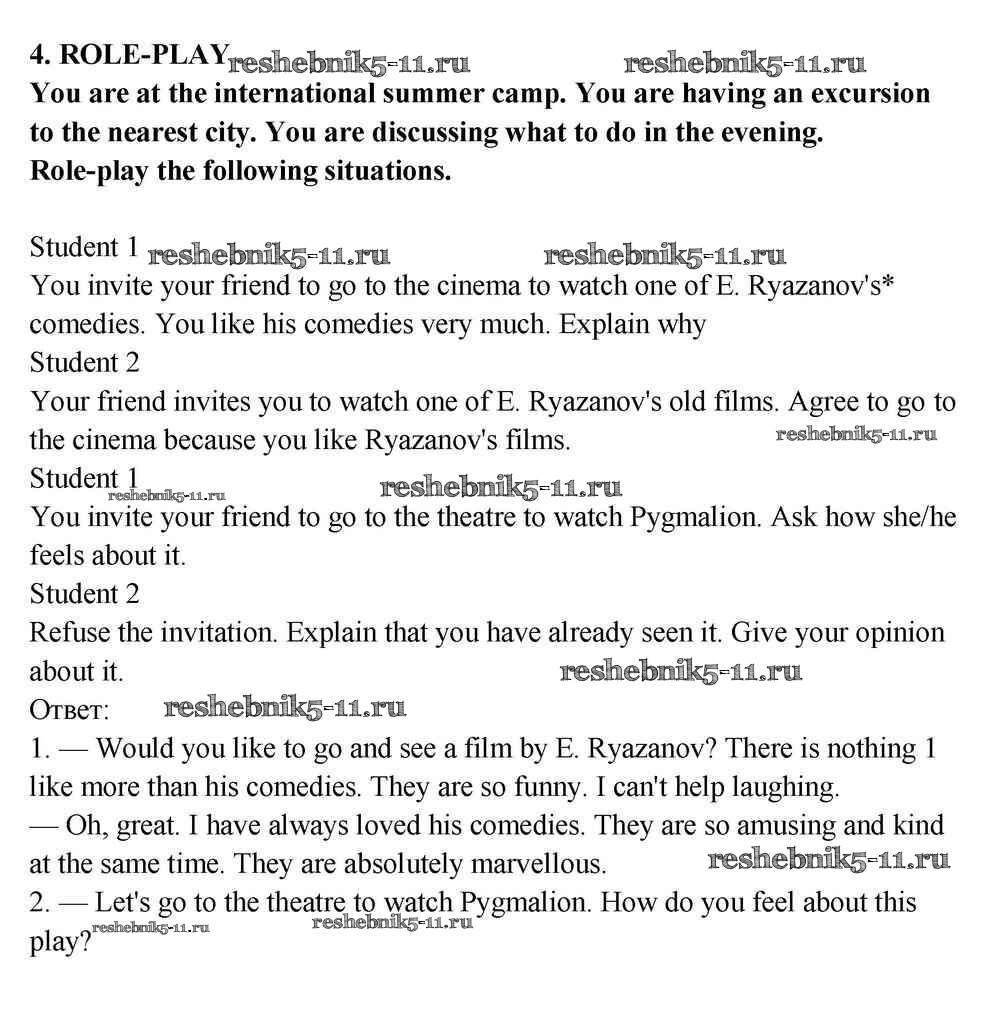 Готовая домашняя работа с ответами по Английскому языку за 10, 11 класс Кузовлев, Лапа, Перегудова Учебник Просвещение 2012 ФГОС - Lesson 5 4