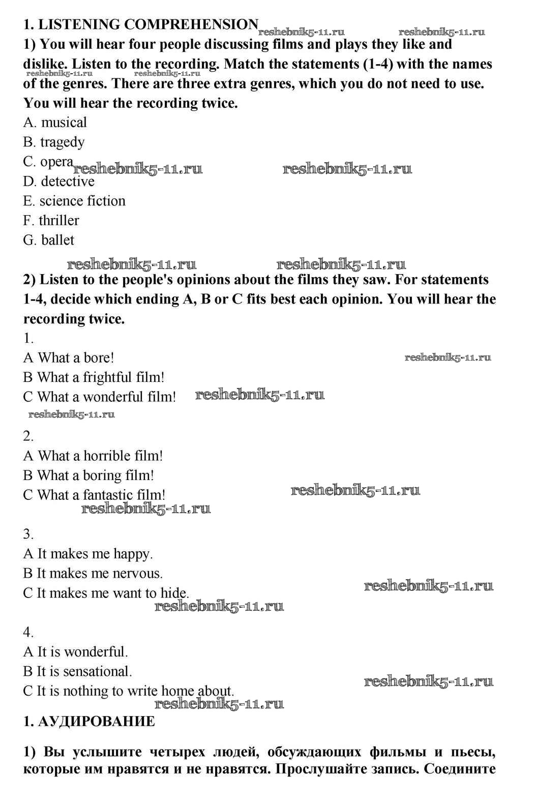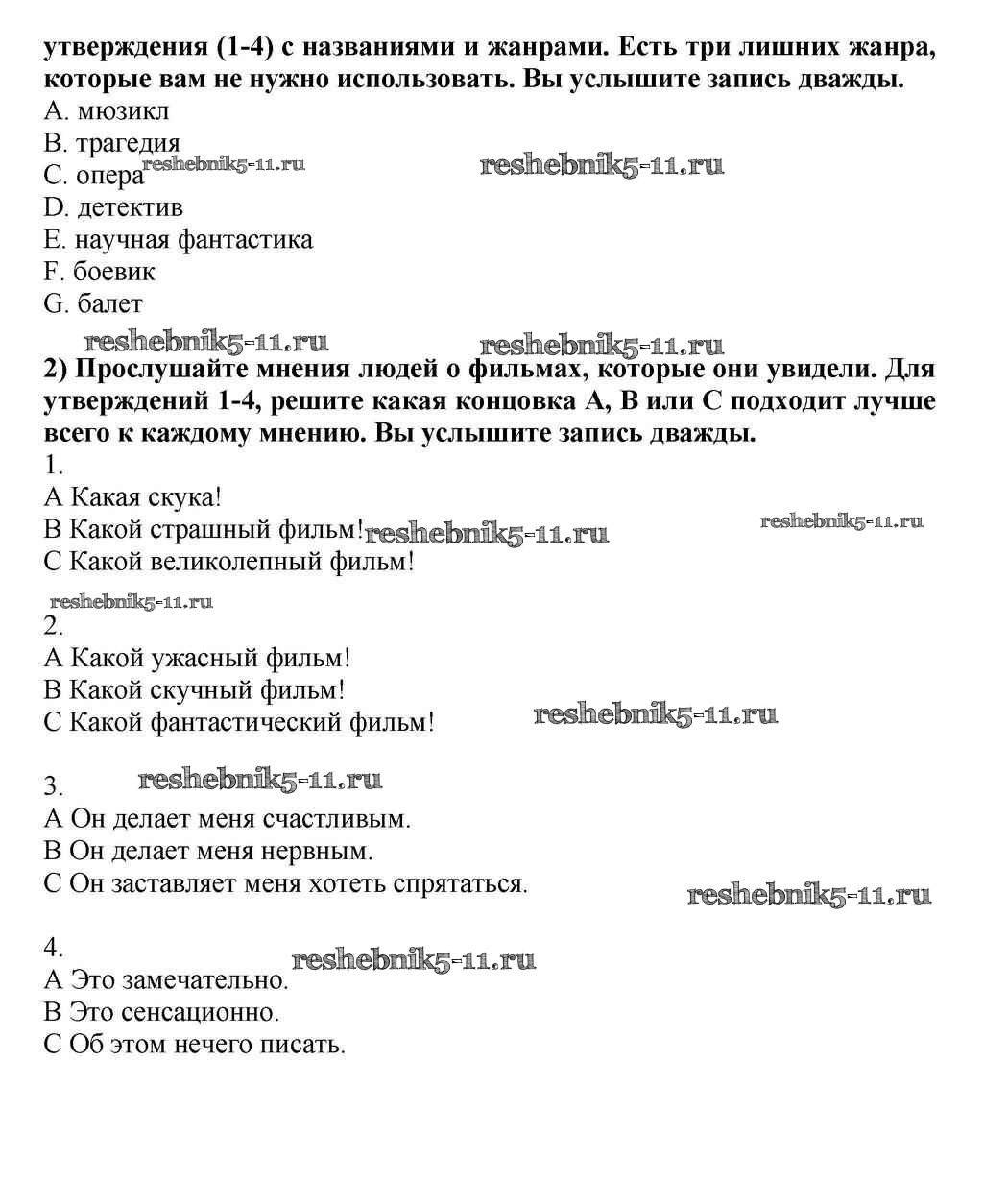 Готовая домашняя работа с ответами по Английскому языку за 10, 11 класс Кузовлев, Лапа, Перегудова Учебник Просвещение 2012 ФГОС - Listening 1