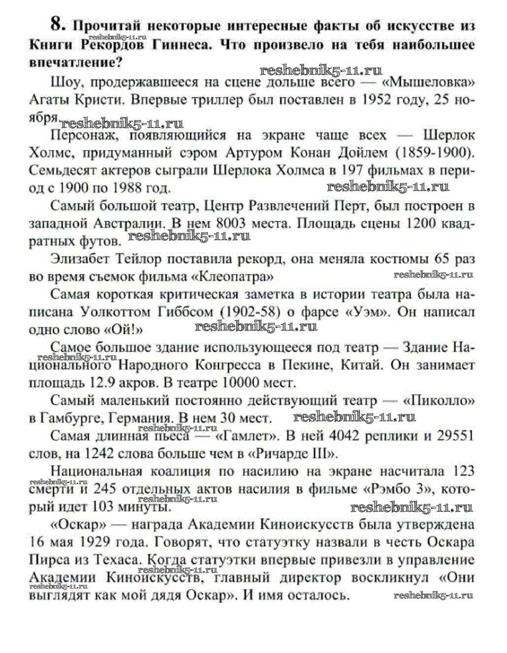 Готовая домашняя работа с ответами по Английскому языку за 10, 11 класс Кузовлев, Лапа, Перегудова Учебник Просвещение 2012 ФГОС - Unit 6 8
