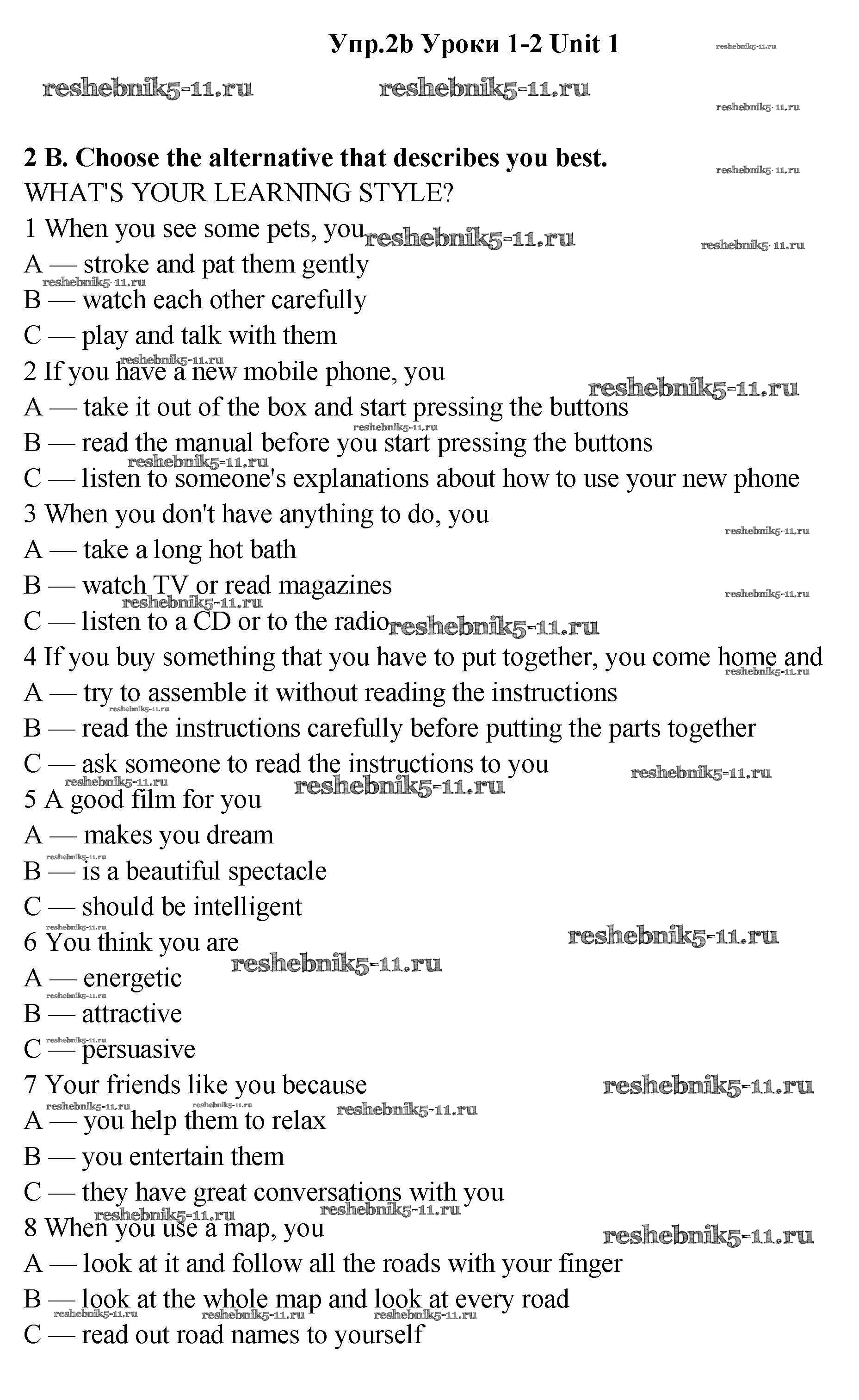 Готовая домашняя работа с ответами по Английскому языку за 11 класс Гроза, Дворецкая Учебник New Millennium Титул 2015 ФГОС - lesson 1-2 2b