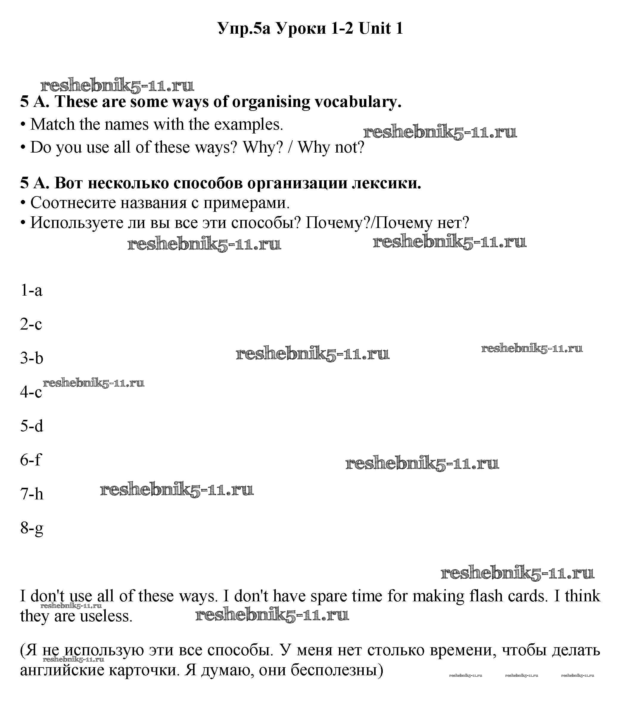 Готовая домашняя работа с ответами по Английскому языку за 11 класс Гроза, Дворецкая Учебник New Millennium Титул 2015 ФГОС - lesson 1-2 5a