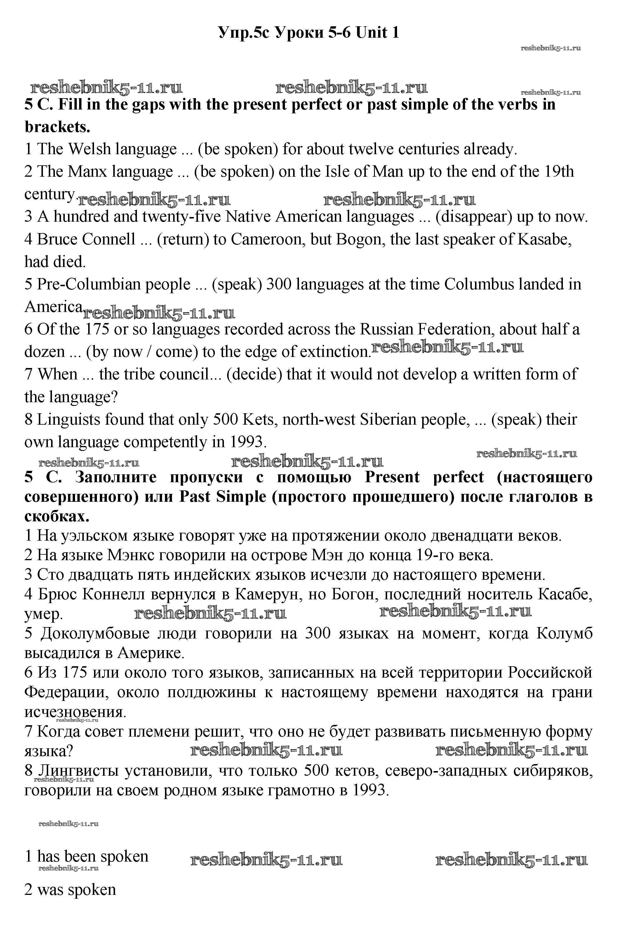 Готовая домашняя работа с ответами по Английскому языку за 11 класс Гроза, Дворецкая Учебник New Millennium Титул 2015 ФГОС - lesson 5-6 5c