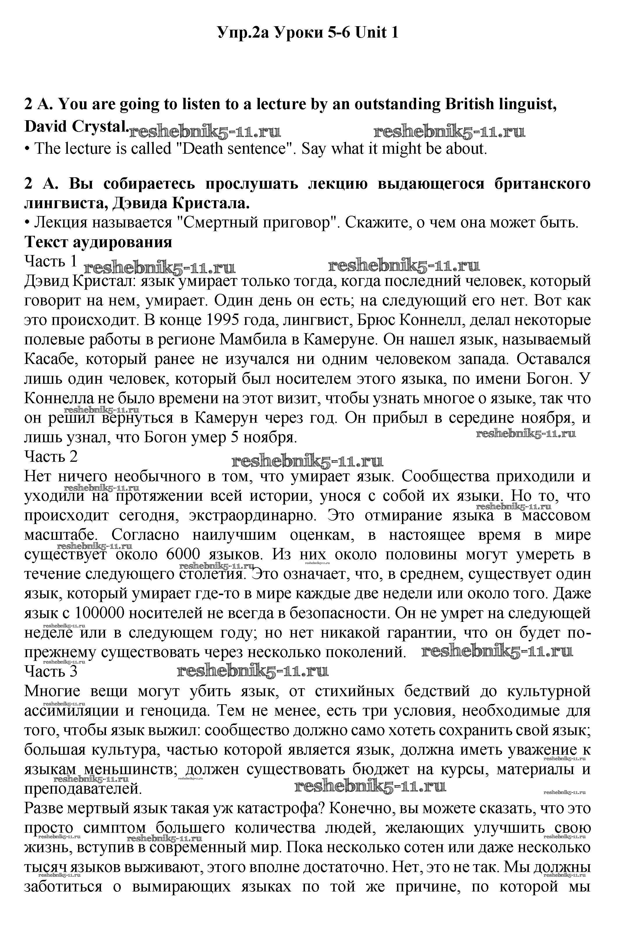 Готовая домашняя работа с ответами по Английскому языку за 11 класс Гроза, Дворецкая Учебник New Millennium Титул 2015 ФГОС - lesson 5-6 2a