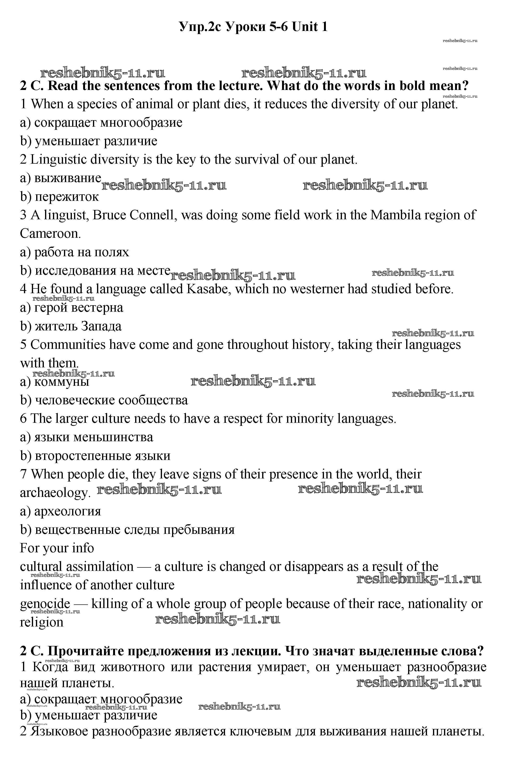 Готовая домашняя работа с ответами по Английскому языку за 11 класс Гроза, Дворецкая Учебник New Millennium Титул 2015 ФГОС - lesson 5-6 2c