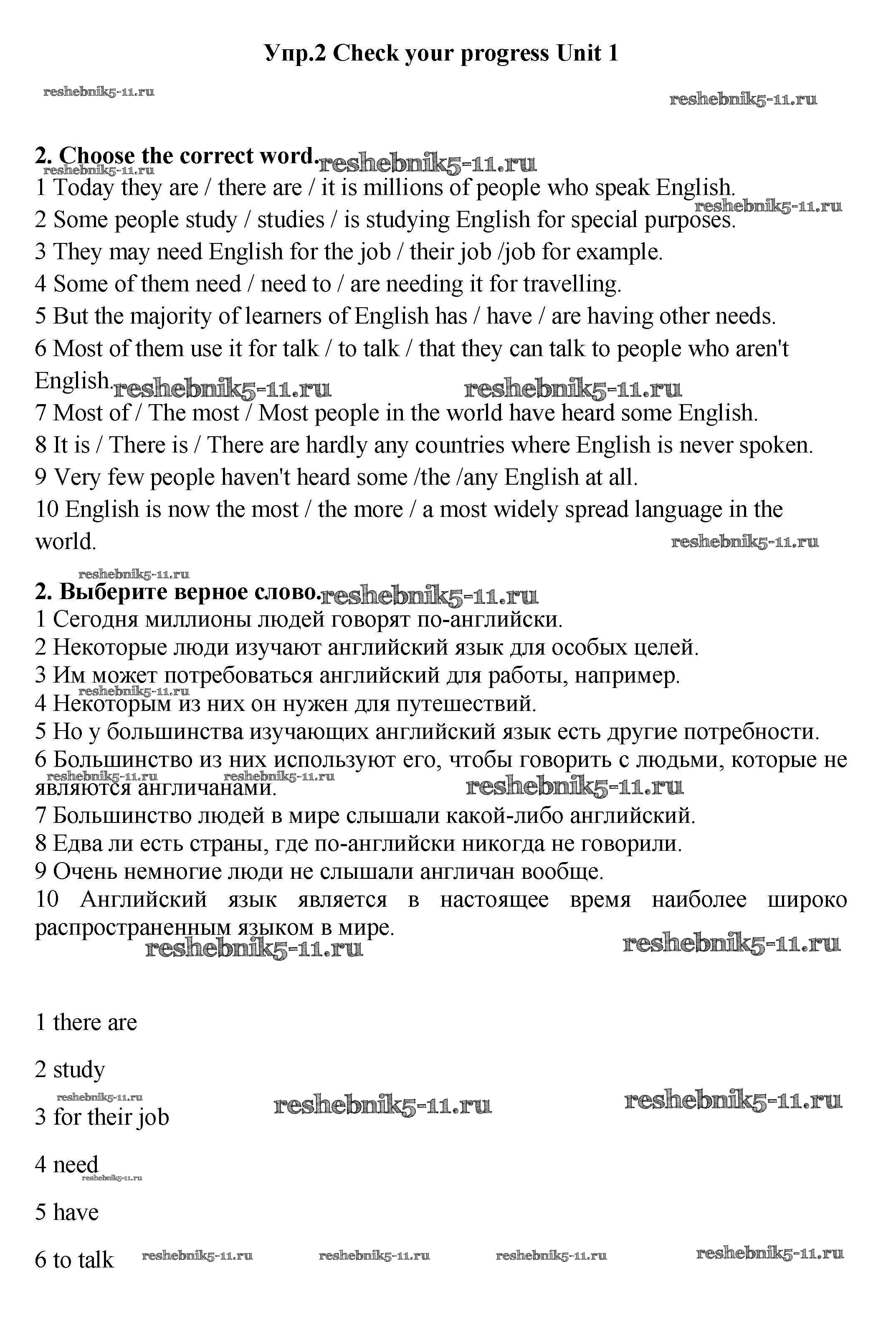 Готовая домашняя работа с ответами по Английскому языку за 11 класс Гроза, Дворецкая Учебник New Millennium Титул 2015 ФГОС - Check your progress 2
