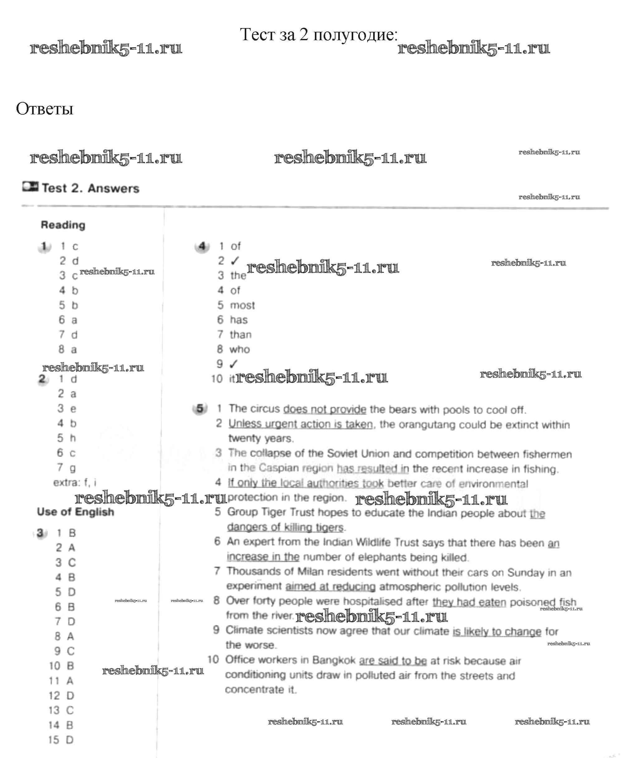 Готовая домашняя работа с ответами по Английскому языку за 11 класс Гроза, Дворецкая Учебник New Millennium Титул 2015 ФГОС - Test 2
