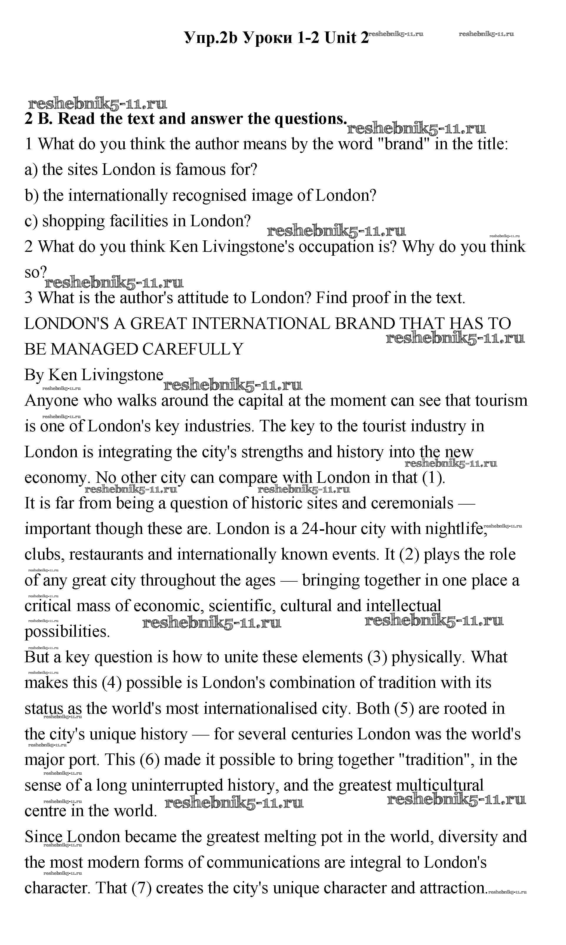 Готовая домашняя работа с ответами по Английскому языку за 11 класс Гроза, Дворецкая Учебник New Millennium Титул 2015 ФГОС - lesson 1-2 2b