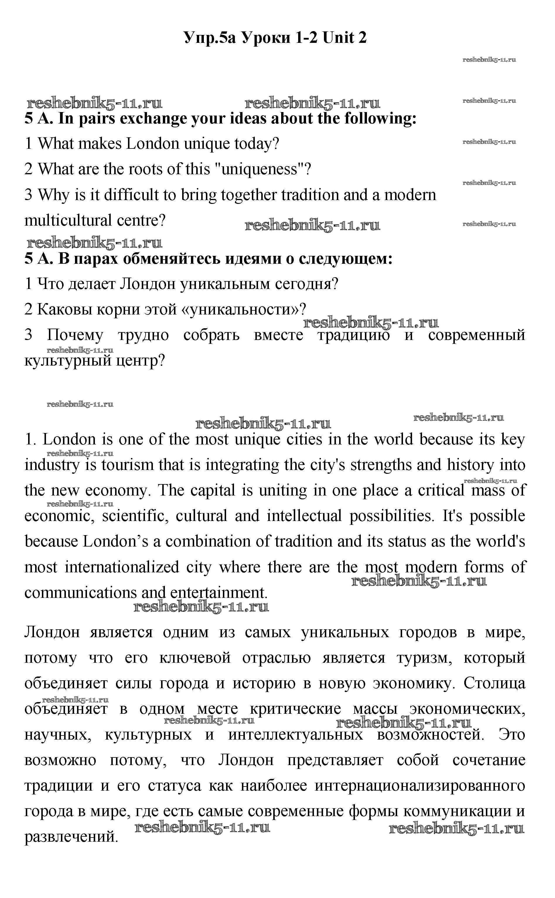 Готовая домашняя работа с ответами по Английскому языку за 11 класс Гроза, Дворецкая Учебник New Millennium Титул 2015 ФГОС - lesson 1-2 5a