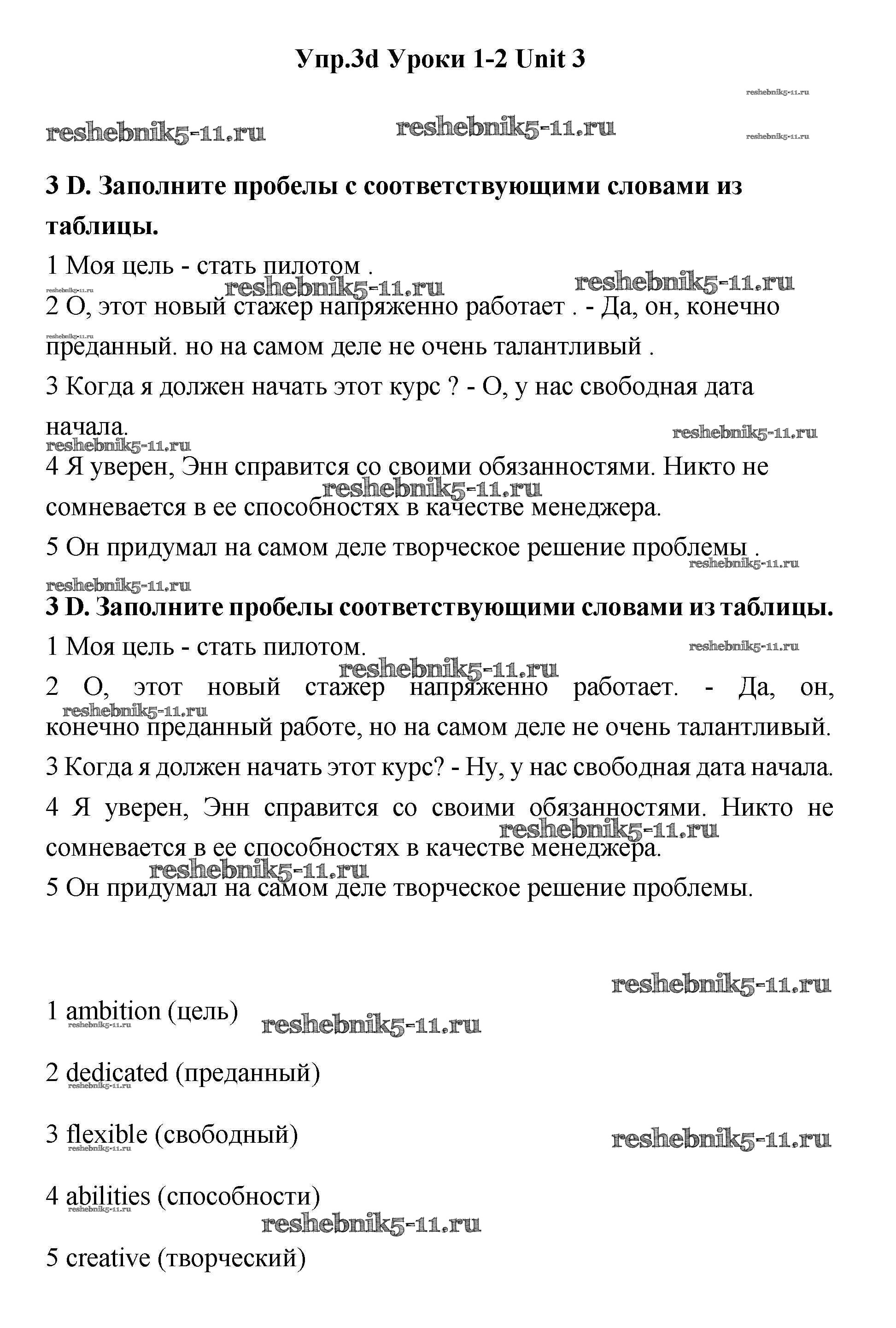 Готовая домашняя работа с ответами по Английскому языку за 11 класс Гроза, Дворецкая Учебник New Millennium Титул 2015 ФГОС - lesson 1-2 3d