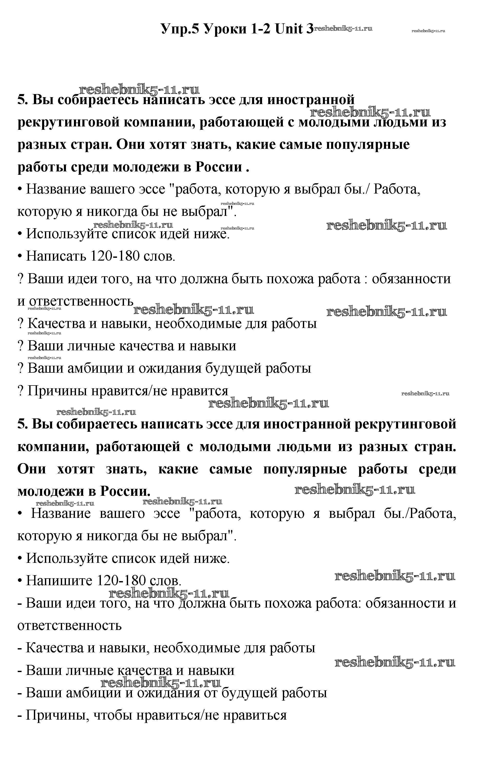 Готовая домашняя работа с ответами по Английскому языку за 11 класс Гроза, Дворецкая Учебник New Millennium Титул 2015 ФГОС - lesson 1-2 5